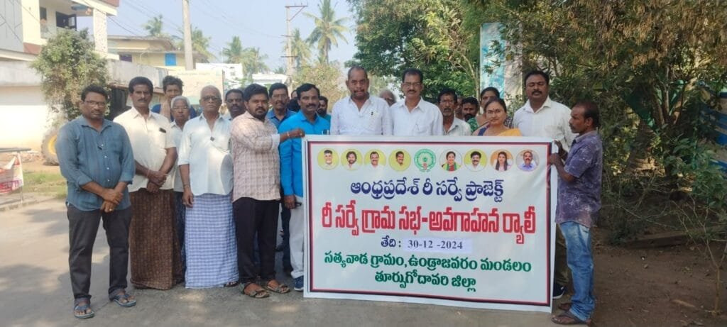 వ్యవసాయ భూములకు సంబంధించిన రైతులకు రీ సర్వే పై అవగాహన కల్పించేందుకు ఆంధ్రప్రదేశ్ ప్రభుత్వం, మండలంలో పైలెట్ ప్రాజెక్టు గ్రామంగా సత్యవాడ గ్రామాన్ని ఎంచుకున్నట్లు డిప్యూటీ తహాసిల్దార్ ఏ కనకదుర్గ సోమవారం తెలిపారు. ఆంధ్రప్రదేశ్ రీ సర్వే ప్రాజెక్ట్ లో భాగంగా గ్రామంలో నిర్వహించిన అవగాహన ర్యాలీ లో ఆమె పాల్గొని, మాట్లాడారు. ఈ సందర్భంగా జనవరి రెండవ తేదీ గురువారం గ్రామ సచివాలయం లో గ్రామ సభ నిర్వహింపబడుతుందని చెప్పారు. రీ సర్వే నిర్వహించేందుకు మండలంలోని గ్రామ సర్వేయర్లు, వీఆర్వో లు, విఆర్ఎ లను 6 టీములుగా విభజించడం జరిగిందని తెలిపారు. ఒక్కొక్క టీం లో ఇద్దరు గ్రామ సర్వేయర్లు, 1 వీఆర్వో, 1 విఆర్ఎ లను నియమించారు. ఈ కార్యక్రమంలో గ్రామ పెద్దలు, మండల సర్వేయర్ జి శ్రీనివాసరావు, రీ సర్వే డిప్యూటీ తహసీల్దార్ ఎం హరి ప్రసాద్, పంచాయతీ కార్యదర్శి జి ప్రసాదరావు, కమ్యూనిటీ సర్వేయర్ బి చాందిని, వీఆర్వో జె లక్ష్మీనరసమ్మ, గ్రామ సర్వేయర్ ఆర్ మారుతి శ్రీరామ్, విఆర్ఎ లు పాల్గొన్నారు.