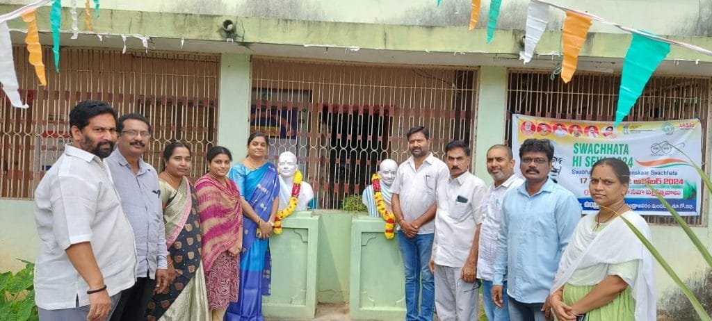 మహాత్మా గాంధీ 155 వ జయంతి సందర్భంగా బుధవారం ఉండ్రాజవరం మండల ప్రజా పరిషత్ కార్యాలయ ఆవరణలో గల గాంధీ, పొట్టి శ్రీరాములు విగ్రహాలకు ఉండ్రాజవరం మండల పరిషత్ అధ్యక్షులు పాలాటి ఎల్లారీశ్వరి పూలమాలలు వేసి ఘనంగా నివాళులర్పించారు. ఈ సందర్భంగా ఆమె మాట్లాడుతూ గాంధీ స్ఫూర్తితో గ్రామాలు స్వచ్ఛభారత్ ప్రారంభించి 10 సంవత్సరములు పూర్తయిన సందర్భంగా పరిసరాల పరిశుభ్రత పాటిస్తూ ఆదర్శంగా నిలవాలని కోరారు. ఈ కార్యక్రమంలో ఎంపీడీవో జీవీఆర్ రామకృష్ణంరాజు, ఏవో శ్రీనివాసరావు, పంచాయతీ విస్తరణ అధికారి జె డి వి ప్రసాద్, మండల వైసీపీ నాయకులు పాలాటి శరత్ బాబు, కార్యాలయ సిబ్బంది నాగనాథ్, మమత, విద్యశ్రీ, అంజిబాబు, కౌసల్య దేవి పాల్గొన్నారు.