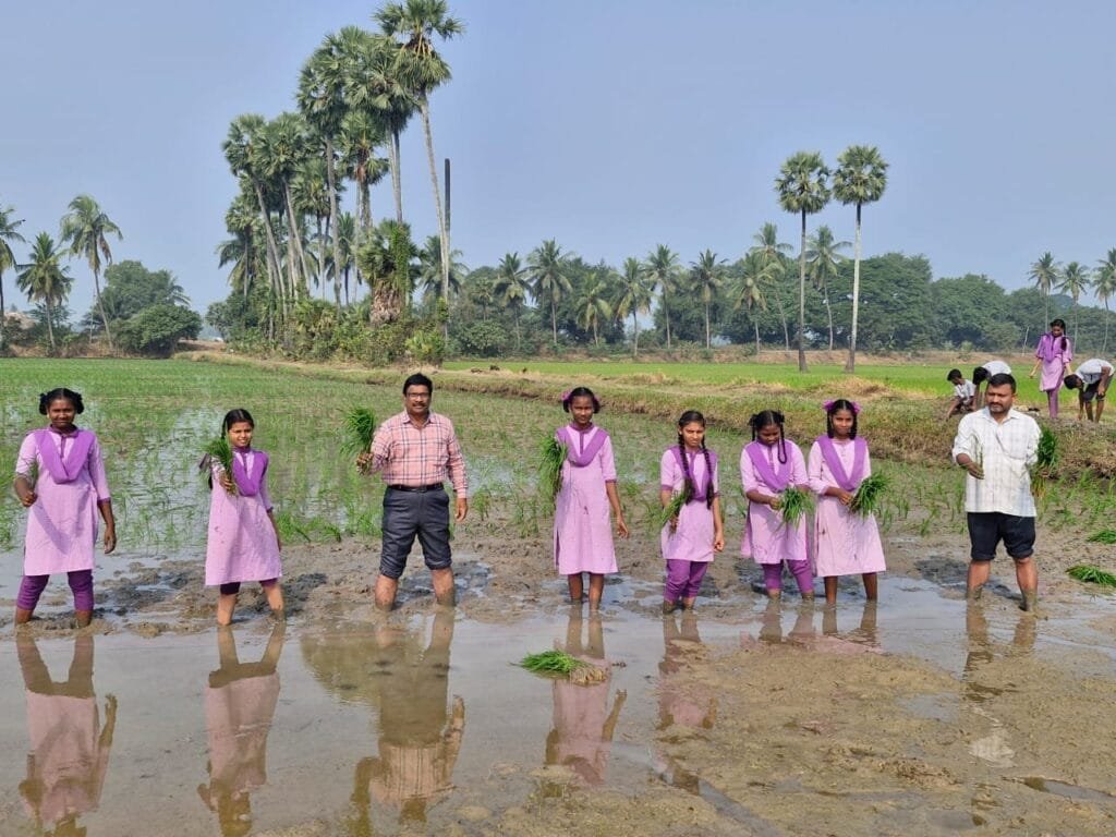 వరినాట్లు నాటిన ముద్దాపురం ప్రభుత్వ పాఠశాల విద్యార్థులు