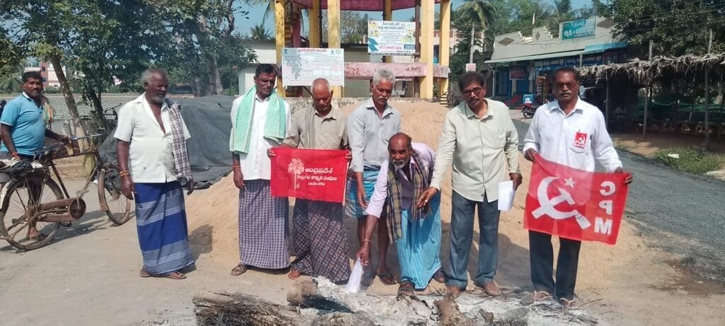 పెంచిన విద్యుత్ చార్జీలను తగ్గించాలని సిపిఎం పార్టీ మండల కమిటీ కన్వీనర్ కామన మునిస్వామి రాష్ట్రప్రభుత్వాన్ని డిమాండ్ చేసారు. సోమవారం నాడు సిపిఎం పార్టీ, ప్రజా సంఘాలు ఆధ్వర్యంలో కరెంటు బిల్లును భోగిమంటలో వేసి దగ్ధం చేసి నిరసన తెలియజేశారు. ఈ సందర్భంగా సిపిఎం పార్టీ ఇరగవరం మండల కన్వీనర్ కామన మునిస్వామి మాట్లాడుతూ రాష్ట్ర ప్రభుత్వము ప్రజలపై 17 వేల కోట్ల రూపాయలు విద్యుత్తు చార్జీల భారాలను మోపిందని అన్నారు. విద్యుత్ బిల్లులో ట్రూ ఆఫ్ చార్జీలు, కస్టమర్ చార్జీలు, ఇంధనం చార్జీలు వేసి రకరకాల పేర్లతో అదనపు భారాన్ని ప్రజలపై రాష్ట్ర ప్రభుత్వం మోపింది అన్నారు. విద్యుత్తు నిర్వహణలో లోపాలు అధికారులు, ప్రభుత్వము వలన లోపాలు జరిగితే భారాలు ప్రజలపై వేయడం సరికాదని మునిస్వామి ఆన్నారు. రు. 1.42 పైసలు ఖరీదైన యూనిట్ కరెంట్ ఛార్జిని 4.50 పైసలకు ప్రైవేటు వ్యక్తుల దగ్గర ప్రభుత్వం కొనుగోలు చేయడం అవినీతికి దర్పణం అని అన్నారు. అదేవిధంగా యూనిట్ 50 పైసలు ఖర్చు అయ్యే సోలార్ కరెంటును 2. 50 పైసలకు కొనే ఒప్పందాన్ని ఆదానేతొ చేసుకోవడo అవినీతికి నిలయమని తెలుస్తుందని అన్నారు. అమెరికన్ ప్రభుత్వం ఆదాని, అతని అనుచరులపై కేసులు పెట్టి విద్యుత్తు ఒప్పందంలో ఆంధ్రప్రదేస్ లో1700 కోట్ల రూపాయలు అధికారులకు లంచాలు ఇచ్చినట్లుగా తెలియజేసిన్నారు. రాష్ట్రంలో జరిగిన ఒప్పందాలను ఆదానీతో రద్దు చేసుకోకుండా ప్రభుత్వం నాటకం ఆడుతుందని అన్నారు. పెంచిన చార్జీలను తగ్గించకపోతే ప్రజలసమీకరణతో సిపిఎం పార్టీ పెద్ద ఎత్తున ఉద్యమాన్ని చేపడుతుందని మునుస్వామి ప్రభుత్వానికి తెలియజేశారు. ఈ కార్యక్రమంలో సిపిఎం పార్టీ నాయకులు వృత్తిగా జుత్తిగా రామాంజనేయులు గీత కార్మిక సంఘం కార్యదర్శి