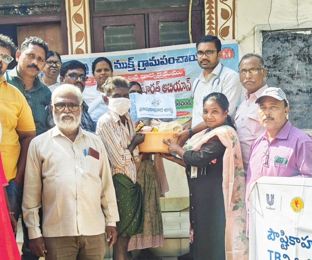 రీచ్ ప్రాజెక్టు సంస్థవారు టీబీ పేషెంట్లను బరువు తక్కువగా ఉన్నవారిని దత్తత తీసుకొని వారికి పోషకాహార కిట్స్ అందజేయడం అభినందనీయం అని వైద్యాధికారి అన్నారు. టీబీ ట్రీట్మెంట్ సూపర్వైజర్ ఆశాజ్యోతి మాట్లాడుతూ క్షయ వ్యాధి నివారణకు మందులు వాడుతున్న వ్యాధిగ్రస్తులకు ప్రభుత్వం పోషకాహార నిమిత్తం ప్రతినెల వెయ్యి రూపాయలు డి బి టి ద్వారా అందజేస్తున్నట్టు తెలిపారు, క్షయ రోగులకు సహాయం అందించడానికి దాతలు ముందుకు రావాలని కోరారు, ఈ కార్యక్రమంలో రీచ్ ప్రాజెక్టు డిస్టిక్ కోఆర్డినేటర్ వర్మ, కమ్యూనిటీ హెల్త్ వర్కర్. కే గంగ భవాని, హెచ్ ఓ ప్రసాద్, ఆరోగ్య సహాయకులు జి వి వి ప్రసాద్, సుబ్బారావు, ఎంఎల్ హెచ్పి శ్యామ్, వైద్య సిబ్బంది పాల్గొన్నారు.