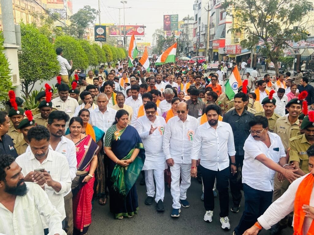 రాజమహేంద్రవరం, కోటిపల్లి బస్టాండ్, స్వాతంత్ర్య సమరయోధుల పార్కు వద్ద భారత రాజ్యాంగం ఏర్పాటై 75 సం”లు పూర్తయిన సందర్భంగా “సంవిధాన్ ర్యాలీలో” పాల్గొన్న ఆంధ్రప్రదేశ్ రాష్ట్ర పర్యాటక, సాంస్కృతిక మరియు సినిమాటోగ్రఫీ మంత్రి కందుల దుర్గేష్. ఈ కార్యక్రమంలో రాజమహేంద్రవరం ఎంపీ శ్రీమతి దగ్గుబాటి పురందేశ్వరి, రాజమహేంద్రవరం రూరల్ ఎమ్మెల్యే గోరంట్ల బుచ్చియ్యచౌదరి, గోపాలపురం ఎమ్మెల్యే మద్దిపాటి వెంకట రాజు, అనపర్తి ఎమ్మెల్యే నల్లమిల్లి రామకృష్ణారెడ్డి, రాజమహేంద్రవరం సిటీ జనసేన పార్టీ ఇంచార్జ్ అనుశ్రీ సత్యనారాయణ, రాజమండ్రి సిటీ జనసేన పార్టీ అధ్యక్షులు వై.శ్రీను తదితరు పాల్గొన్నారు.