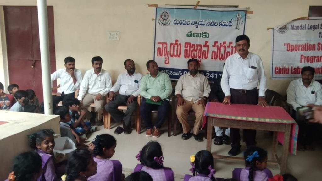 సజ్జాపురం రాజీవ్ గాంధీ మున్సిపల్ ఎలిమెంటరీ స్కూలు No.14, యందు శుక్రవారం తణుకు వెట్టి చాకిరీ నిర్మూలన దినోత్సవం సందర్భంగా చైర్మన్ మరియు నాలుగవ అదనపు జిల్లా జడ్జి శ్రీమతి డి. సత్యవతి ఆదేశముల మేరకు ప్యానెల్ న్యాయవాదులు, లేబర్ ఆఫీసర్ సత్యనారాయణ, సి.డి.పి.ఓ శ్రీమతి ప్రమోదీని కుమారి పిల్లలకు చట్టాలపై అవగాహన కల్పిస్తూ 14 సంవత్సరాలలో ఉన్న పిల్లలు అందరు చదువుకోవాలని, యే ఒక్కరూ చదువుకూ దూరం కాకూడదని ప్రభుత్వం ఉచిత నిర్భంధ విద్య అమలు పరుస్తుందని, పిల్లల్ని పనులలో పెట్టుకోకూడదని, గ్రామాలలో మోతూబారుల దగ్గర పాలేరులుగా పెట్టుకుని వారితో వెట్టిచాకిరీ చేయించడం నేరమని, ప్రతి ఒక్కరూ పిల్లల పట్ల శ్రద్ధ తీసుకుని వారిని చదివించి భావిభారత పౌరులుగా తీర్చిదిద్దాలని తెలిపారు. ఈ కార్యక్రమంలో లేబర్ ఆఫీసర్ సత్యనారాయణ, చైల్డ్ డెవలప్మెంట్ అథారిటీ ప్రాజెక్టు అధికారి శ్రీమతి ప్రమోదిని కుమారి, స్కూలు హెడ్ మాస్టర్ కె. నాగరాజు, సీనియర్ న్యాయవాదులు కౌర్ వెంకటేశ్వర్లు, కామన మునిస్వామి, లోక్ అదాలత్ ప్యానెల్ న్యాయవాదులు అజయ్ కుమార్ ఆంగజాల, సత్యనారాయణ తీర్రే, న్యాయవాదులు ధనుంజయ, భానోజీ రావు, పారా లీగల్ వాలంటీర్ లు బ్రహ్మాజీ పాల్గొన్నారు.