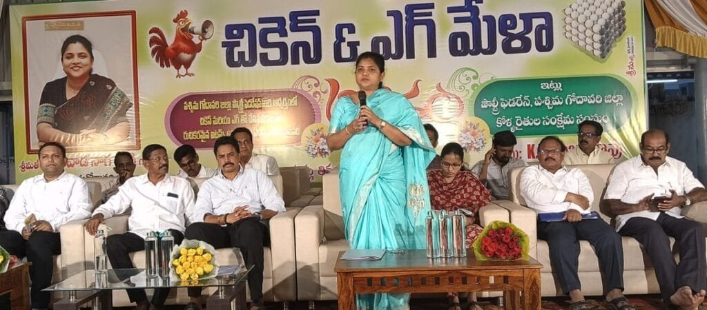 బుధవారం తణుకు బైపాస్ రోడ్డులో నేక్ కళ్యాణ మండపంలో జిల్లా పశుసవర్ధక శాఖ, పశ్చిమగోదావరి జిల్లా పౌల్ట్రీ ఫెడరేషన్, నెక్, కోళ్ళ రైతుల సంక్షేమ సంఘం సంయుక్తంగా నిర్వహించిన చికెన్ & ఎగ్ మేళా కార్యక్రమానికి జిల్లా కలెక్టరు చదలవాడ నాగరాణి, స్థానిక శాసనసభ్యులు ఆరిమిల్లి రాధాకృష్ణ సంయుక్తంగా పాల్గొన్నారు. చికెన్, గ్రుడ్డులతో చేసిన ఆహార పదార్థాలను జిల్లా కలెక్టరు చదలవాడ నాగరాణి, శాసనసభ్యులు ఆరిమిల్లి రాధాకృష్ణ స్వయంగా వడ్డించి, చికెన్ ఎగ్ మేళాను లాంఛనంగా ప్రారంభించారు.