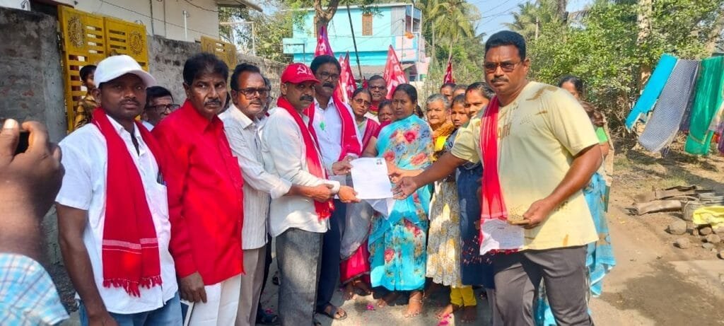 ప్రభుత్వం ఏర్పాటు చేసిన కాలనీలలో ప్రజల సమస్యలను పరిష్కరించాలని సిపిఎం పార్టీ జిల్లా కార్యదర్శి జుత్తిగా గోపాలన్ ప్రభుత్వాన్ని డిమాండ్ చేశారు. ప్రజాచైతన్య సైకిల్ యాత్రలో భాగంగా మంగళవారం ఇరగవరంమండలంలోని ఓగిడి, కొత్తపాడు ఇరగవరం ఎర్రయ్యచెరువు గ్రామాల్లోని కాలనీ యాత్ర బృందావనం పర్యటించి అక్కడ ప్రజలను కలిసి వారి సమస్యలను అడిగి తెలుసుకున్నారు ఈ సందర్భంగా గోపాలన్ మాట్లాడుతూ రాష్ట్ర ప్రభుత్వం పేద మధ్యతరగతి కుటుంబాలకు రాష్ట్రం ప్రభుతం ఇచ్చిన ఇళ్లస్థలాలు, ఇళ్ల నిర్మాణాలులో కనీస సౌకర్యాలు అనగా రోడ్ల నిర్మాణము, డ్రైనేజీ, కరెంటు, మంచినీటి సౌకర్యాలు లేక ప్రజలు అనేక ఇబ్బందులు పడుతున్నారని అన్నారు .ప్రభుత్వము నిధులు కేటాయించాలని సమస్యలు పరిష్కారానికి కృషి చేయాలని ప్రభుత్వాన్ని డిమాండ్ చేశారు. సమస్యల పరిష్కారం కోసం ఈనెల 17వ తేదీన చలో కలెక్టరేట్ నిర్వహిస్తున్నామని తెలిపారు. ప్రజలు అప్పులు చేసి ఇల్లు నిర్మించుకోవడం వల్ల ఆర్థికంగా ఇబ్బందులు పడుతూ కుటుంబాలు రోడ్డున పడుతున్నాయని అన్నారు. ప్రభుత్వము ప్రకటించిన నిధులు కూడా లబ్ధిదారులకు సకాలంలో అందడం లేదని గోపాల్ అని అన్నారు. ఎన్నికల ముందు కూటమి ఓటమి ఇచ్చిన హామీలను వెంటనే అమలు చేయాలని లేని పక్షంలో ఉద్యమాన్ని ఉధృతం చేస్తామని తెలిపారు. ఈ కార్యక్రమంలో జిల్లా కమిటీ సభ్యులు కామన మునిస్వామి, పార్టీసభ్యులు ఇల్లందుపర్తి సత్యనారాయణ, ఈ.ముసలయ్య, డి నాగబాబు, పాల సత్యనారాయణ, జుత్తిగా రామాంజనేయులు, పిల్లి కోటీశ్వరావు, పేచ్చేటి నాగేశ్వరరావు పాల్గొన్నారు.