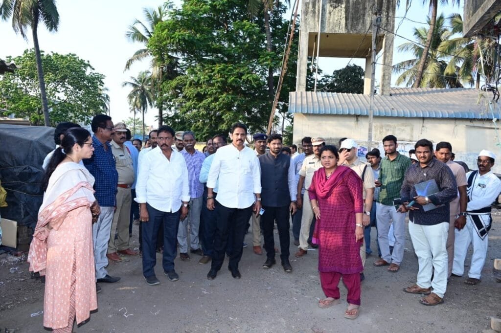 ఈ పర్యటనలో జిల్లా సూపరిండెంట్ ఆఫ్ పోలీస్ అద్నాన్ నయీం అస్మి, తణుకు శాసనసభ్యులు ఆరుమిల్లి రాధాకృష్ణ, జిల్లా జాయింట్ కలెక్టర్ టి.రాహుల్ కుమార్ రెడ్డి, ముఖ్యమంత్రి ప్రోగ్రాం కోఆర్డినేటర్ పెందుర్తి వెంకటేష్, అడిషనల్ ఎస్పీ వి.భీమారావు, తాడేపల్లిగూడెం, నరసాపురం ఆర్డీవోలు కతీబ్ కౌసర్ భానో, దాసిరాజు, డి.ఎస్.పి డి.విశ్వనాథ్, మున్సిపల్ కమిషనర్ టి.రాంకుమార్, తహసిల్దార్ డివివిఎస్ అశోక్ వర్మ, పాలిటెక్నిక్ కళాశాల ప్రిన్సిపాల్ డాక్టర్ ఎన్.తులసీరాధ, హెడ్మాస్టర్లు కే.పద్మావతి, వివిధ శాఖల జిల్లా అధికారులు, తదితరులు ఉన్నారు.