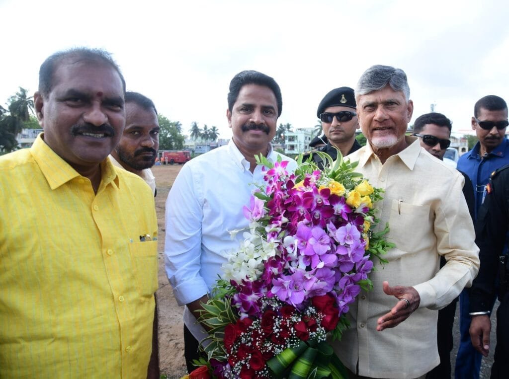 శనివారం రాష్ట్ర ముఖ్యమంత్రి నారా చంద్రబాబు నాయుడు తణుకు యస్ యంవియం పాలిటెక్నిక్ కళాశాలలో ఏర్పాటు చేసిన హేలిఫ్యాడ్ నందు ఉదయం 9:00 గంటలకు చేరుకున్నారు. ముఖ్యమంత్రి చంద్రబాబు ఘనస్వాగతం పలికిన వారిలో జిల్లా ఇన్చార్చి, రాష్ట్ర విద్యుత్తు శాఖ మంత్రి గొట్టిపాటి రవికుమార్, రాష్ట్ర జలవనరుల శాఖ మంత్రి డాక్టరు నిమ్మల రామానాయుడు, రాష్ట్ర పురపాలక పరిపాలన మరియు పట్టణ అభివృద్ధి శాఖ మాత్యులు పొంగూరు నారాయణ, ఏపి స్వచ్ఛ ఆంధ్ర కార్పొరేషన్ చైర్మన్ కొమ్మారెడ్డి పట్టాభిరామ్, జిల్లా పరిషత్తు చైర్పర్సన్ ఘంటా పద్మశ్రీ, జిల్లా కలెక్టరు చదలవాడ నాగరాణి, జిల్లా ఎస్పీ అద్నాన్ నయీమ్ అస్మి, జిల్లా జాయింటు కలెక్టరు టి.రాహుల్ కుమార్ రెడ్డి, జిల్లా శాసనసభ్యులు ఆరిమిల్లి రాధాకృష్ణ,పులపర్తి రామాంజనేయులు, పితాని. సత్యనారాయణ, బొల్లినేని శ్రీనివాస్,మద్దిపాటి వెంకటరాజు, బొమ్మిడి నాయకర్, శాసనమండలి సభ్యులు పేరాబత్తుల రాజశేఖరం, రాష్ట్ర ఏపిఐఐసి చైర్మన్ మంతెన రామరాజు, మాజీ పార్లమెంటు సభ్యురాలు తోట సీతారామలక్ష్మి, మాజీ శాసన మండలి సభ్యులు అంగర రామ్మోహన్, మాజీ శాసన సభ్యులు ముళ్ళపూడి వెంకటకృష్ణారావు, జిల్లా బిజెపి జిల్లా అధ్యక్షులు అయినంపూడి శ్రీదేవి, తదితరులు వున్నారు.