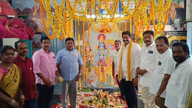 తణుకు నియోజకవర్గంలోని ఆయా గ్రామాల్లో వాడవాడలా శ్రీరామనవమి వేడుకలు ఆదివారం అంగరంగ వైభవంగా జరిగాయి. తణుకు పట్టణంతోపాటు తణుకు, ఇరగవరం, అత్తిలి మండలాల్లోని ఆయా గ్రామాల్లో రామాలయాలు, ఆంజనేయ స్వామి దేవాలయాల్లో చలువ పందిళ్లు మధ్య నిర్వహించిన కల్యాణ మహోత్సవాలు అత్యంత వైభవంగా సాగాయి. ఈ సందర్భంగా ఆయా గ్రామాల్లోని దేవాలయాలను తణుకు ఎమ్మెల్యే ఆరిమిల్లి రాధాకృష్ణ దర్శించుకుని ప్రత్యేక పూజలు నిర్వహించారు. జగదభి రాముడి దయతో ప్రజలంతా సుభిక్షంగా ఉండాలని, రామరాజ్యం లాంటి కూటమి ప్రభుత్వ పాలనలో మన రాష్ట్రం మరింత పురోగతి సాధించాలని స్వామివారికి కోరుకున్నట్లు ఎమ్మెల్యే వివరించారు. తణుకు పట్టణంలోని 11వ వార్డు, 10వ వార్డు, 22వ వార్డులతోపాటు తణుకు ఎన్జీవో హోం, పైడిపర్రు, సావరం ఆంజనేయస్వామి ఆలయం, అత్తిలి మండలం అత్తిలి, తణుకు మండలం గోపాలపురం, వేల్పూరు గ్రామంలోని మొత్తం 3 దేవాలయాలను ఎమ్మెల్యే రాధాకృష్ణ దర్శించుకున్నారు. ఈ కార్యక్రమంలో ఎమ్మెల్యే వెంట పలువురు కూటమి నాయకులు, కార్యకర్తలు పాల్గొన్నారు.