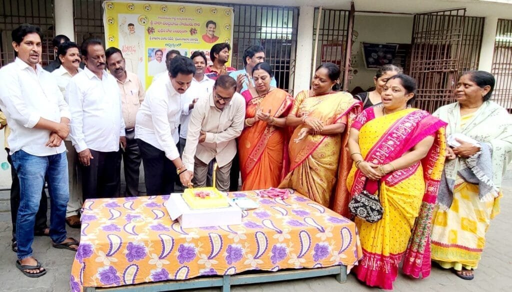 అనంతరం సరళాదేవి దంపతులు సి ఎమ్ పుట్టిన రోజు సందర్భంగా ఏర్పాటు చేసిన కేక్ ను కట్ చేసి చిన్నారులకు పాల్గొన్న వారికి అందించారు .