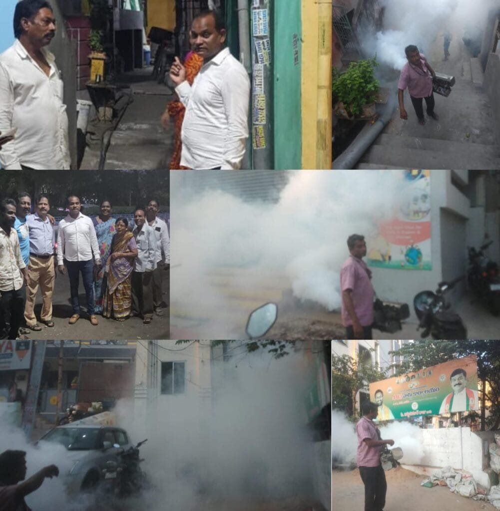 దోమలు,కీటకాలు ప్రబలకుండా 48వ వార్డులో ఫాగ్గింగ్ పనులు చేపట్టిన గంకల కవిత అప్పారావు
