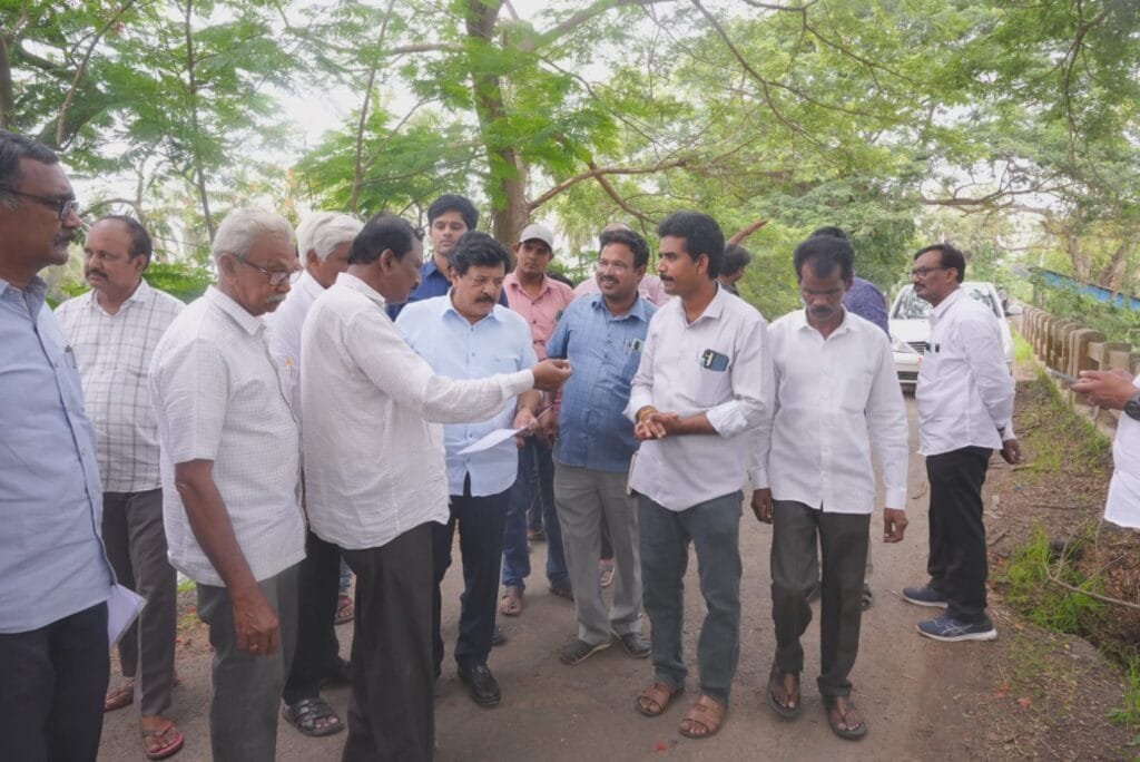 నిడదవోలు నియోజకవర్గం, చివటం నుండి వడ్లూరు వెళ్లే ప్రధాన రహదారిపై ఉన్న బ్రిడ్జి పరిస్థితిని వ్యక్తిగతంగా పరిశీలించి, ప్రజలు తరచూ ప్రయాణించే ఈ మార్గం మీద రహదారి భద్రతపై ఆందోళనలు వ్యక్తమవుతున్న నేపథ్యంలో సంబంధిత అధికారులతో సమీక్ష జరిపై, బ్రిడ్జి పునరుద్ధరణ, దుర్బలమైన నిర్మాణ మరియు తదితర అంశాలపై అధికారులకు తగిన సూచనలు అందించి, ప్రజలకు ఎలాంటి అసౌకర్యం కలగకుండా తక్షణ చర్యలు చేపట్టాలని అధికారులను ఆదేశించి, ప్రజల అవసరాలకు అనుగుణంగా మౌలిక వసతుల మెరుగుదలకే కూటమి ప్రభుత్వం కట్టుబడి ఉందని తెలియజేసిన ఆంధ్రప్రదేశ్ రాష్ట్ర పర్యాటక, సాంస్కృతిక మరియు సినిమాటోగ్రఫీ మంత్రివర్యులు కందుల దుర్గేష్.