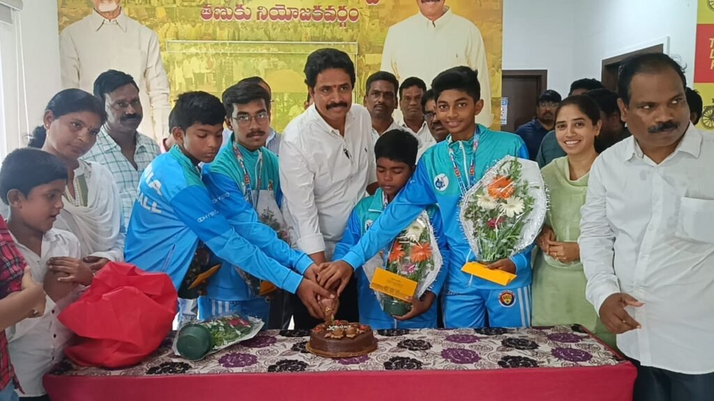 ఈనెల 27 నుంచి 29 వరకు శ్రీలంకలో నిర్వహించిన అంతర్జాతీయ స్థాయి ఇన్విడీషనల్‌ రోల్‌ బాల్‌ ఛాంపియన్‌ షిప్‌ 2025 పోటీల్లో బంగారు పతకాలు సాధించిన తణుకునకు చెందిన క్రీడాకారులను ఎమ్మెల్యే ఆరిమిల్లి రాధాకృష్ణ అభినందించారు. సీనియర్‌ కేటగిరీలో రెడ్డి హర్షవర్థన్, జూనియర్‌ విభాగంలో నలమాటి షరత్రావు, గుల్లపూడి రంజిత్‌కుమార్, సబ్‌ జూనియర్‌ విభాగంలో రెడ్డి గగన్‌దీప్‌లతోపాటు కోచ్‌ లావణ్య, చందులను అభినందించారు. ఈ సందర్భంగా ఎమ్మెల్యే రాధాకృష్ణ మాట్లాడుతూ కూటమి ప్రభుత్వం క్రీడలకు అత్యంత ప్రాధాన్య ఇస్తోందని చెప్పారు. క్రీడలను, క్రీడాకారులను ప్రోత్సహించేందుకు తనవంతు కృషి చేస్తానని హామీ ఇచ్చారు. అంతర్జాతీయ స్థాయిలో ప్రతిభ సాధించిన క్రీడాకారులకు ప్రభుత్వం ప్రోత్సహకాలు అందిస్తోందన్నారు. ఏపీను సైతం క్రీడలకు హబ్‌గా తయారు చేయడానికి ముఖ్యమంత్రి చంద్రబాబునాయుడు ప్రణాళికలు చేస్తున్నారని అన్నారు. తణుకులో సైతం వివిధ క్రీడలకు సంబంధించి థీమ్‌ ప్రకారం పార్కులను అభివృద్ధి చేయడానికి ప్రణాళికలు చేస్తున్నట్లు చెప్పారు. గత తెలుగుదేశం ప్రభుత్వ హయాంలో నిర్మించిన స్కేటింగ్‌ స్టేడియం ద్వారా ఎంతో మంది క్రీడాకారులు తయారవుతున్నారి అంతే కాకుండా జాతీయ, అంతర్జాతీయ స్థాయిలో ప్రతిభ చూపుతుండం పట్ల ఆయన సంతోషం వ్యక్తం చేశారు. ఇదే ఉత్సాహాన్ని భవిష్యత్తులోనూ కొనసాగించి మరింత మంది క్రీడాకారులను తయారు చేసే విధంగా కోచ్‌ లావణ్య కృషి చేయాలని ఎమ్మెల్యే రాధాకృష్ణ ఆకాంక్షించారు.