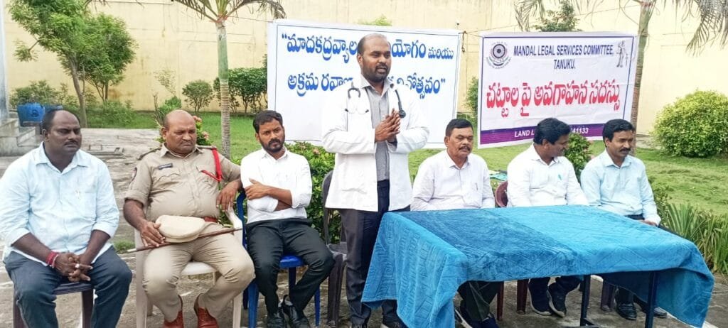 అంతర్జాతీయ మాదకద్రవ్యాల వ్యతిరేక, అక్రమరవాణా దినోత్సవం సందర్భంగా చైర్మన్ మరియు నాలుగవ అదనపు జిల్లా జడ్జి శ్రీమతి డి. సత్యవతి ఆదేశాలు మేరకు ప్యానెల్ న్యాయవాదులు రిమాండ్ ముద్దాయిలకు అవగాహన కల్పిస్తూ మత్తుపానీయాలకు దూరంలో ఉండాలని, గంజాయి సాగు చేయుట, రవాణా చేయుట, త్రాగుట నేరమని, కఠినమైన శిక్షలు ఉన్నాయని సీనియర్ న్యాయవాది కౌరు వెంకటేశ్వర్లు తెలిపారు, డాక్టర్ శ్రీ రాజ్ మాట్లాడుతూ మత్తుపానీయాలు ద్వారా ఆరోగ్యం పాడవుతుందనీ, మానసికంగా, శారీరకంగా ఇబ్బందులు వస్తాయని, మత్తుపదార్ధాలు జీవితాన్ని నాశనం చేస్తాయని తెలిపారు. న్యాయవాది అజయ్ కుమార్ మాట్లాడుతూ ఎన్.డి.పి.ఎస్. గంజాయి కేసులలో శిక్షలు కఠినంగా ఉన్నాయన్నారు. ఈ కార్యక్రమంలో న్యాయవాదులు కౌరు వెంకటేశ్వర్లు, టి. సత్యనారాయణరాజు, జే.ఆర్.వి.వి.ఎస్ పవన్ కుమార్, అజయ్ కుమార్, డాక్టర్ శ్రీరాజ్, జైలు సూపరింటెండెంట్ జి. మోహనరావు, కాకర్ల నాని, జైలు సిబ్బంది పాల్గొన్నారు.