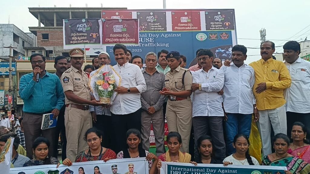 గత వైస్సార్సీపీ ప్రభుత్వ హయాంలో గంజాయి ఆంధ్రప్రదేశ్గా మార్చిన జగన్మోహన్రెడ్డి ప్రతి గ్రామానికి గంజాయి, డ్రగ్స్ పరిచయం చేసిన దుర్మార్గుడు అని తణుకు ఎమ్మెల్యే ఆరిమిల్లి రాధాకృష్ణ ఆరో పించారు. 2019 నుంచి 2024 వరకు రాష్ట్రంలో గంజాయి పండించి అక్రమంగా వ్యాపారం చేసి విరివిగా అన్ని గ్రామాలకు గంజాయి సరఫరా చేసే విధంగా వైసీపీ మాఫియా పని చేసిందన్నారు. అంతర్జాతీయ మాదకద్రవ్యాల దుర్వినియోగం, అక్రమరవాణా వ్యతిరేక దినోత్సవాన్ని పురస్కరించుకుని తణుకులో గురువారం నిర్వహించిన అవగాహన ర్యాలీను ఎమ్మెల్యే రాధాకృష్ణ ప్రారంభించి మాట్లాడారు. రూ. వేల కోట్లు విలువైన అక్రమ గంజాయి రాష్ట్రవ్యాప్తంగా వైసీపీ నేతలు సరఫరా చేశారని దుయ్యబట్టారు. దేశంలో ఎక్కడైనా గంజాయి, డ్రగ్స్ పట్టుబడితే వాటి మూలాలు రాష్ట్రంలో కనిపించేవని విమర్శించారు. అలాంటి పరిస్థితుల నుంచి కూటమి ప్రభుత్వం అధికారంలోకి వచ్చిన తర్వాత ముఖ్యమంత్రి చంద్రబాబు నాయుడు గంజాయి, డ్రగ్స్కు వ్యతిరేకంగా అలాంటి మాఫియాలపై ఉక్కుపాదం మోపే విధంగా అనేక చర్యలు తీసుకున్నారని అన్నారు. గంజాయి, డ్రగ్స్ సరఫరా చేసే మాఫియా వెన్నులో వణుకు పుట్టే విధంగా చంద్రబాబు అనేక సంస్కరణలు తీసుకువచ్చినట్లు చెప్పారు. కూటమి ప్రభుత్వం అ«ధికారంలోకి వచ్చిన ఏడాదిలోనే ఎక్కడెక్కడ గంజాయి సాగును అరికట్టి ప్రత్యేక చట్టాలను తీసుకువచ్చి గంజాయి, డ్రగ్స్ సరఫరా చేసే వారికి అదే ఆఖరి రోజుగా చంద్రబాబు నిర్ణయాలు తీసుకున్నారని పేర్కొన్నారు. డ్రగ్స్, గంజాయి వినియోగాన్ని అరికట్టి యువత వినియోగించకుండా ముఖ్యమంత్రి చంద్రబాబునాయుడు నాయకత్వంలో రాష్ట్రవ్యాప్తంగా కార్యక్రమం చేపట్టడం అభినందనీయమన్నారు. గంజాయి, డ్రగ్స్ అరికట్టే విధంగా ప్రజలు ముందుకు రావాలన్నారు. గంజాయి, డ్రగ్స్కు సంబంధించి ఎక్కడైనా సమాచారం ఉంటే టోల్ఫ్రీ 1972 నెంబర్కు ఫోన్ చేసి చెప్పాలని సూచించారు. ఈ కార్యక్రమంలో పోలీసు, ఎక్సైజ్ శాఖలకు చెందిన అధికారులు, పలు విద్యాసంస్థలకు చెందిన ప్రతినిధులు, విద్యార్థులు, కూటమి నాయకులు, నాయకులు పాల్గొన్నారు.