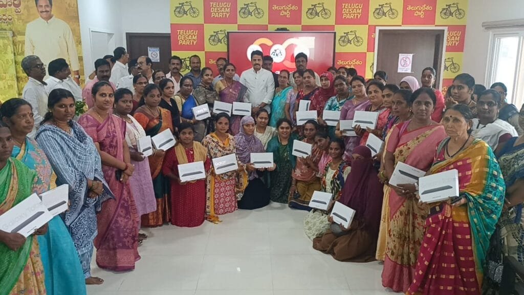 సాంకేతిక పరిజ్ఞానాన్ని మహిళలు అందిపుచ్చుకోవాలని తణుకు ఎమ్మెల్యే ఆరిమిల్లి రాధాకృష్ణ అన్నారు. ముఖ్యమంత్రి నారా చంద్రబాబునాయుడు కృషితోనే పరిపాలనలో సాంకేతికత అభివృద్ధి చెందిందని పేర్కొన్నారు. ప్రతి రంగంలో సాంకేతికతను అభివృద్ధి చేశారన్నారు. తణుకు కూటమి కార్యాలయంలో డ్వాక్రా మహిళలకు సంబంధించి ఆర్పీలకు రూ. 30 వేలు విలువైన ట్యాబులను అందజేసి మాట్లాడారు. తణుకు పట్టణంలోని 49 పట్టణ పేదరిక నిర్మూలన సంస్థలోని 49 మంది ఆర్పీలకు రూ. 14.70 లక్షలు విలువైన ట్యాబులను అందజేశారు. ముఖ్యంగా 1500 డ్వాక్రా గ్రూపులకు సంబంధించి ఎస్ఎల్ఎఫ్, ఆర్పీలకు సంబంధించి మరింత వేగంగా పని చేసేందుకు వీలుగా ట్యాబులను ప్రభుత్వం అందిస్తోందని చెప్పారు. కూటమి ప్రభుత్వం అధికారంలోకి వచ్చిన తర్వాత బ్యాంకు లింకేజీ ద్వారా తణుకు పట్టణంలో 9.95 శాతం వడ్డీతో 58 గ్రూపులకు రూ. 45 కోట్లు పైగా రుణాలు అందించిట్లు చెప్పారు. ట్యాబుల ద్వారా వారి కార్యకలాపాలను అనుసంధానం చేసే వి«ధంగా డ్వాక్రా మహిళలకు సేవలు మరింత సరళతరం చేసేందుకు అవకాశం ఉంటుందని చెప్పారు. డిజి లక్ష్మి ద్వారా మహిళలకు ఉద్యోగ భద్రత కల్పించే విధంగా మీ సేవ కేంద్రాలకు ప్రత్యామ్నాయంగా ఎస్ఎల్ఎఫ్ స్థాయిలో అందించేందుకు చర్యలు తీసుకుంటోందని అన్నారు. మహిళలకు ఆర్థిక స్వాలంభన సాధించేందుకు వీలుగా ప్రభుత్వం అన్ని రకాల చర్యలు తీసుకుంటోందన్నారు. ఈ కార్యక్రమంలో కూటమి నాయకులు, కార్యకర్తలు పాల్గొన్నారు.