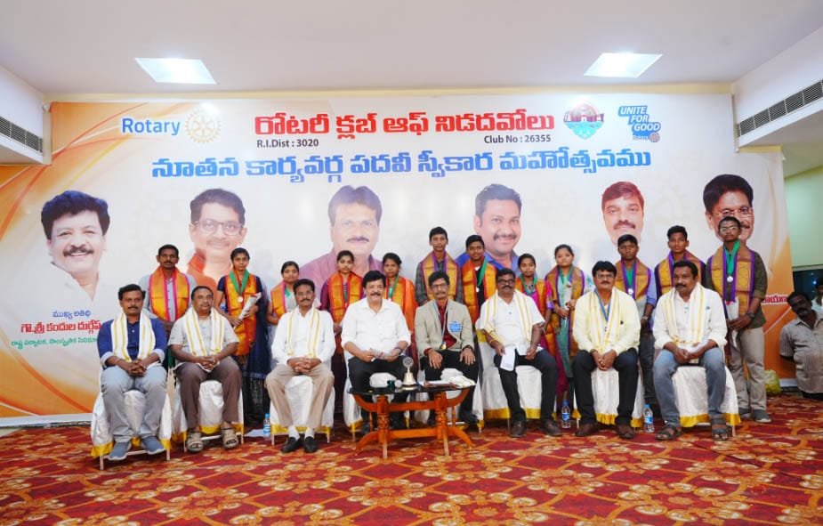 నిడదవోలు పట్టణం రోటరీ ఆడిటోరియం నందు నిడదవోలు రోటరీ క్లబ్ 37వ నూతన కార్యవర్గ ప్రమాణ స్వీకార మహోత్సవం కార్యక్రమంలో ముఖ్యఅతిథిగా పాల్గొని కార్యవర్గ సభ్యులకు శుభాకాంక్షలు తెలియజేసిన ఆంధ్రప్రదేశ్ రాష్ట్ర పర్యాటక, సాంస్కృతిక మరియు సినిమాటోగ్రఫీ మంత్రివర్యులు శ్రీ కందుల దుర్గేష్ గారు. ఈ సందర్భంగా 2025 ఎస్.ఎస్.సి పరీక్షలలో అత్యధిక మార్కులు సాధించిన విద్యార్థులకు మెడల్స్ వేసి సత్కరించారు.