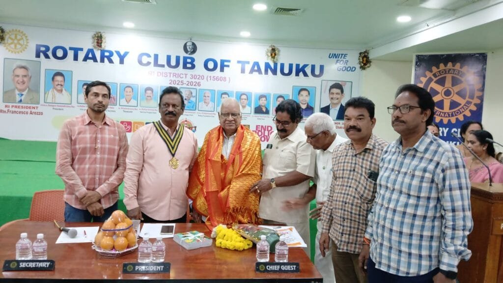 రోటేరియన్ డా. కలగర వెంకటకృష్ణ అధ్యక్షతన జరిగిన వారాంతపు సమావేశానికి ప్రముఖ సామాజిక ప్రముఖ సామాజిక వేత్త డి.వి.వి. ఎస్. వర్మ ప్రధాన వక్తగా విచ్చేసి, “సమాజం – స్వఛ్ఛంద సేవ” అంశంపై మాట్లాడుతూ రోటరీ వేదిక నుంచి స్వఛ్ఛంద సేవ గురించి మాట్లాడమంటే అతిశయంగాఉంటుందేమో అని సందేహం అన్నారు. వ్యక్తిగత సేవకంటే సామూహికంగా, సామాజికంగా సేవ కే ప్రాధాన్యమిస్తూ మొదటిగా మొక్కలు నాటే కార్యక్రమం తణుకులో నలుదిక్కులా చేశానన్నారు. మరుగు దొడ్లు నిర్మింప జేసే ఉద్యమం జిల్లా అధికారులు సహకారంతో సుమారు 4000 మంది మహిళల డిమాండ్ తో కార్యరూపం దాల్చింది. అలాగే అక్షరాస్యతా ఉద్యమం పరంగా ముఖ్యంగా మహిళలకు చిన్నచిన్న పుస్తకాలు ముద్రింపజేసి పంపిణీతో చేసిన సందర్భం, అదోక అక్షర యజ్ణంగా విస్తరించింది. అలాగే డ్వాక్రా మహిళా సంఘాలలో అవగాహన కలిగించి పట్టణాలకు సహితం విస్త్రుతి చెందేలా చేశాము. అలాగే ప్రకృతిని రక్షించే, ప్రకృతితో సహజీవనం చేసే విధానాలు ప్రచారం చేశాము. ప్రకృతి విలయాన్ని వ్యతిరేకించామన్నారు. కార్యక్రమానికి కార్యదర్శి రో.జి.సుధాకర్, రొ. మల్లిన అరుణసారధి, నందిగం సుధాకర్, రొ. వై.ఎస్. సుబ్రహ్మణ్యం, రొ. ఆనందం మస్తాన్ రావు, రొ. అక్కిన కాశీవిశ్వనాధం, రొ.మేడికొండ వెంకటేశ్వరరావు, రొ. అకెళ్ళ సుబ్రహ్యం అలాగే పట్టణంలోని లాయర్లు, అసోసియేషన్ సభ్యులు, లయన్స్ క్లబ్ సామాజిక సేవాతత్పరులు, తదితరులు పాల్గొన్నారు, ఉపాధ్యాయవర్గాలు కూడ పాల్గొన్నారు.
