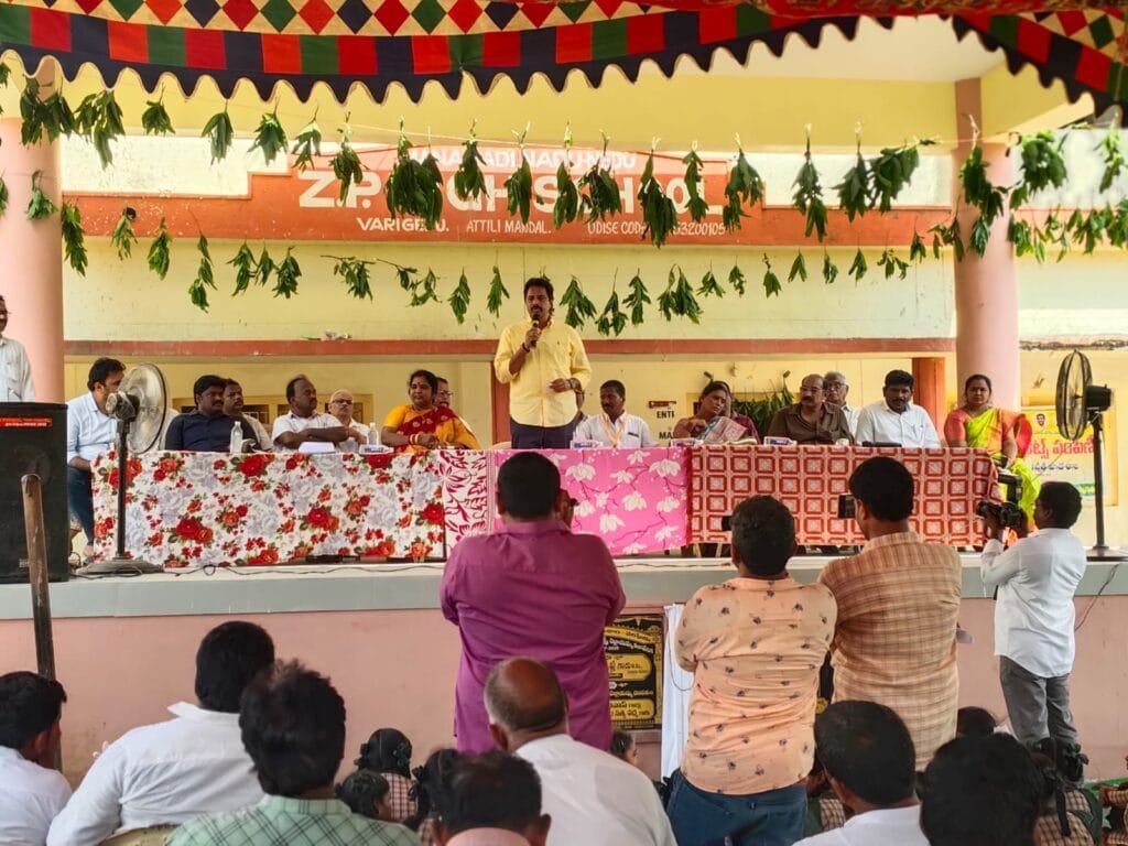 ఎంత ఆస్తులు సంపాదించినప్పటికీ సమాజం కోసం ఎంతో కొంత ఖర్చు పెడుతూ సమాజ అభివృద్ధికి కృషి చేస్తూ ప్రతి ఒక్కరు దాతృత్వాన్ని అలవర్చుకోవాలని ఎమ్మెల్యే ఆరిమిల్లి రాధాకృష్ణ అన్నారు. అత్తిలి మండలం వరిఘేడు గ్రామంలో జిల్లా పరిషత్తు ఉన్నత పాఠశాల ఆవరణలో సుమారు రూ. 6 లక్షల వ్యయంతో గ్రామానికి చెందిన అడ్డాల కృష్ణారావు, అనంతలక్ష్మి దంపతుల కుమారులు నిర్మించిన కళావేదిక ప్రారంభోత్సవంలో ఎమ్మెల్యే రాధాకృష్ణ పాల్గొని మాట్లాడారు. స్థానికంగా ఉంటూ విదేశాల్లో స్థిరపడినప్పటికీ తల్లిదండ్రుల జ్ఞాపకార్థం స్థానికంగా విద్యార్థులకు ఉపయోగపడే విధంగా కళావేదిక నిర్మించడం అభినందనీయమని అన్నారు. ముఖ్యమంత్రి చంద్రబాబు నాయుడు అదే దాతృత్వంతో గతంలో ముఖ్యమంత్రిగా పనిచేసినప్పుడు జన్మభూమి కార్యక్రమం ద్వారా ఎన్నో కార్యక్రమాలు చేపట్టి గ్రామాల అభివృద్ధికి విశేష కృషి చేశారని గుర్తు చేశారు. ఆనాడు ఎంతోమంది దాతలు ముందుకు వచ్చి జన్మభూమి కార్యక్రమానికి సహకారం అందించారని అన్నారు. అదే స్ఫూర్తితో తిరిగి చంద్రబాబు నాయుడు పి4 విధానాన్ని అమలులోకి తీసుకువచ్చి దాతలను ప్రోత్సహిస్తున్నారని అన్నారు. ప్రభుత్వ పాఠశాలల్లో మౌలిక సదుపాయాల కల్పనకు కూటమి ప్రభుత్వం పెద్దపీట వేస్తోందని అన్నారు. విద్యా వ్యవస్థలో మంత్రి లోకేష్ అనేక సంస్కరణలో తీసుకువచ్చి ప్రతి మండలంలో మోడల్ స్కూల్స్ నిర్మించారని అన్నారు. ప్రభుత్వం అందిస్తున్న ప్రోత్సాహకాలను సద్వినియోగం చేసుకొని తల్లిదండ్రులు ప్రభుత్వ పాఠశాలలో చదివించేందుకు చొరవ చూపించాలని కోరారు. ప్రభుత్వ పాఠశాలలో విద్యార్థుల సంఖ్య పెంచే విధంగా తల్లిదండ్రుల కమిటీ, విద్యా కమిటీ సభ్యులు కృషి చేయాలని కోరారు. ఈ కార్యక్రమంలో కూటమి నాయకులు, కార్యకర్తలు పాల్గొన్నారు.