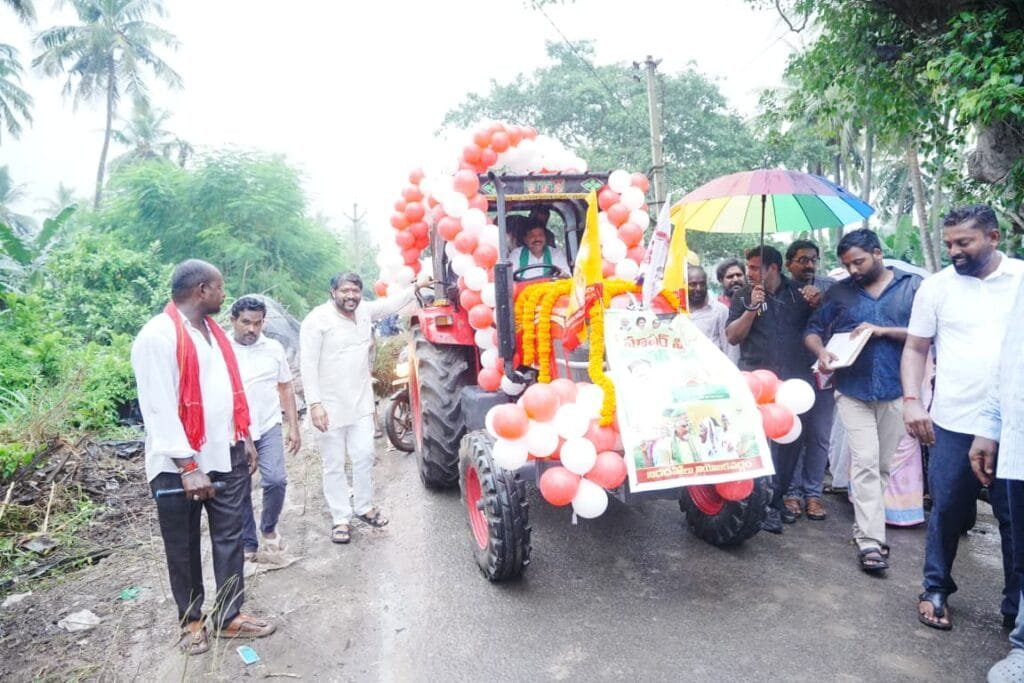 నిడదవోలు: సూపర్ సిక్స్ హామీల్లో అన్నదాత సుఖీభవ- పీఎం కిసాన్ యోజన అమలు చేశామని తద్వారా రైతన్నల ఖాతాల్లో రూ.20వేల రూపాయల పెట్టుబడి సాయాన్ని జమ చేశామని మంత్రి కందుల దుర్గేష్ పేర్కొన్నారు. ముఖ్యమంత్రి నారా చంద్రబాబు నాయుడుకు కృతజ్ఞతలు తెలియజేస్తూ బుధవారం నిడదవోలు నియోజకవర్గంలోని తాడిపర్రు నుండి వెలగదుర్రు వరకు ట్రాక్టర్లతో అన్నదాత సుఖీభవ విజయోత్సవ ర్యాలీని నిర్వహించారు. మంత్రి కందుల దుర్గేష్ ఆకుపచ్చ కండువా వేసుకొని కార్యక్రమంలో పాల్గొన్నారు. స్వయంగా ట్రాక్టర్ ను నడుపుతూ ప్రజలకు అభివాదం చేశారు. రాష్ట్ర ప్రభుత్వం రైతులకు అన్నదాత సుఖీభవ పథకం కింద నిధులు విడుదల చేసిన దానికి కృతజ్ఞతగా భారీ వర్షంలో సైతం ర్యాలీ చేపట్టామన్నారు. అన్నదాత సుఖీభవ పేరుతో తమకు ఆర్థిక సహకారం అందించిన సీఎం,డిప్యూటీ సీఎంలు సుఖంగా ఉండాలని రైతన్నలు నినదించారు.