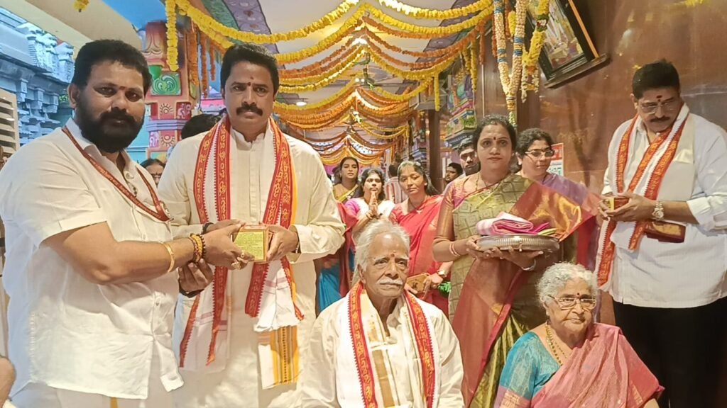 దేవి శరన్నవరాత్రులు పురస్కరించుకుని విజయవాడ ఇంద్రకీలాద్రిపై వేంచేసిన కనకదుర్గమ్మను ఎమ్మెల్యే ఆరిమిల్లి రాధాకృష్ణ గురువారం దర్శించుకున్నారు. నవరాత్రుల్లో భాగంగా శ్రీ కాత్యాయని దేవి అలంకారంలో ఉన్న అమ్మవారిని రాధాకృష్ణ కుటుంబ సమేతంగా దర్శించుకుని అమ్మవారికి ప్రత్యేక పూజలు నిర్వహించారు. అనంతరం వేద పండితులు ఆశీర్వదించి తీర్థప్రసాదాలు అందజేశారు. తణుకు నియోజకవర్గ పరిధిలోని ప్రజలు అంతా సుఖసంతోషాలతో ఉండాలని ఈ సందర్భంగా అమ్మవారిని కోరుకున్నట్లు ఆయన వెల్లడించారు.