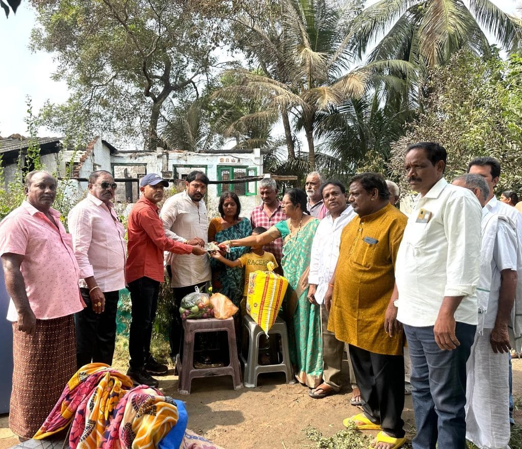 రాష్ట్ర పర్యాటక, సాంస్కృతిక, సినిమాటోగ్రఫీ మంత్రి కందుల దుర్గేష్ ఆదేశాలతో తాడిమల్ల గ్రామంలో అగ్ని ప్రమాదానికి గురై ఇళ్లు కోల్పోయిన దిరుసుమిల్లి నాగేశ్వరరావు కుటుంబానికి రాష్ట్ర ప్రభుత్వం తరపున నిత్యావసర వస్తువులు, వ్యక్తిగతంగా రూ.10 వేల ఆర్థిక సాయం అందజేత గొప్ప మనసు చాటుకున్న మంత్రి దుర్గేష్ అంటూ ఆనందం వ్యక్తం చేసిన బాధిత కుటుంబం మంత్రి కందుల దుర్గేష్ అందించిన ఆర్థిక సాయం వెలకట్టలేనిదంటూ పేర్కొన్న బాధిత కుటుంబం నిడదవోలు రూరల్ మండలం తాడిమల్ల గ్రామంలో అగ్ని ప్రమాదానికి గురై ఇళ్లు కోల్పోయిన దిరుసుమిల్లి నాగేశ్వర రావు కుటుంబానికి రాష్ట్ర పర్యాటక, సాంస్కృతిక, సినిమాటోగ్రఫీ మంత్రి కందుల దుర్గేష్ ఆదేశాలతో ఎమ్మార్వో నాగరాజు నాయక్, స్థానిక కూటమి నాయకుల చేతుల మీదుగా రాష్ట్ర ప్రభుత్వం తరపున నిత్యావసర వస్తువులు, వ్యక్తిగతంగా రూ.10 వేల చొప్పున ఆర్థిక సాయం అందజేశారు. నిత్యావసర వస్తువుల్లో భాగంగా 25 కేజీల బియ్యం, 1 కిలో కందిపప్పు, 1 కిలో బంగాళ దుంపలు, 1 కిలో ఉల్లిపాయలు, 1 కేజీ ఆయిల్ ప్యాకెట్ పంపిణీ చేశారు. అగ్ని ప్రమాదానికి పూర్తిగా ఇళ్లు దగ్దమైందని ఈ కష్ట కష్టకాలంలో మంత్రి కందుల దుర్గేష్ గొప్ప మనసు చాటుకొని తమ కుటుంబానికి భరోసానిచ్చారని, ఆయన అందించిన ఆర్థిక సాయం వెలకట్టలేనిదని బాధిత దిరుసుమిల్లి నాగేశ్వర రావు కుటుంబం ఆనందం వ్యక్తం చేసింది. దుర్గేష్ లాంటి నాయకుడు కల్పించిన భరోసాతో ధైర్యంగా ముందుకు సాగుతామన్నారు. కార్యక్రమంలో స్థానిక ఎమ్మార్వో నాగరాజు నాయక్, జనసేన పార్టీ మండల అధ్యక్షులు పోలిరెడ్డి వెంకటరత్నం, గ్రామ జనసేన, తెలుగుదేశం, బీజేపీ పార్టీల నాయకులు తదితరులు పాల్గొన్నారు.