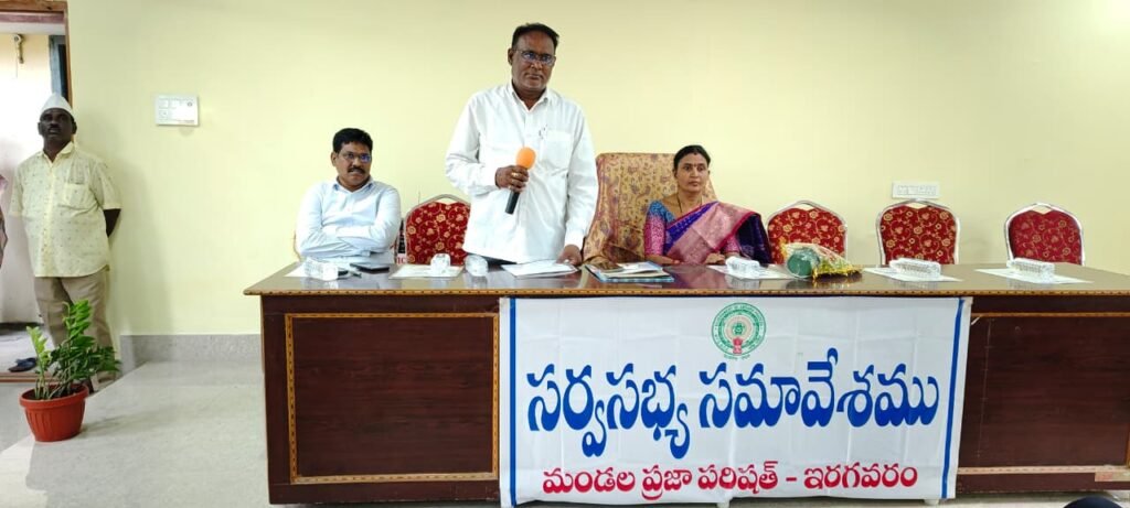 ఇరగవరం మండల ప్రజా పరిషత్ కార్యాలయంలో శుక్రవారం సర్వసభ్య సమావేశం మండల ప్రజా పరిషత్ అధ్యక్షులు కొప్పిశెట్టి అలివేలు మంగతాయారు అధ్యక్షతన జరిగింది. ఈ సందర్భంగా జరిగిన సమావేశంలో ఎంపీపీ కొప్పిశెట్టి అలివేలు మంగతాయారు మాట్లాడుతూ సర్వసభ్య సమావేశానికి హాజరైన సభ్యులకు గ్రామ సర్పంచులకు, మండల అధికారులకు, సచివాలయ సిబ్బందికి దీపావళి శుభాకాంక్షలు తెలియజేస్తూ సర్వసభ్య సమావేశానికి తప్పనిసరిగా ప్రజాప్రతినిధులు హాజరై మండలంలో అమలు చేస్తున్న అభివృద్ధి కార్యక్రమాల వివరాలను సంబంధిత శాఖల అధికారుల నుండి పనుల పురోగతి తెలుసుకోవాలని అన్నారు. మండల పరిషత్ అభివృద్ధి అధికారి ఏ. శ్రీనివాస్ మాట్లాడుతూ మండలంలో ప్రస్తుతం అమలు జరుగుతున్న వివిధ శాఖల యందు అభివృద్ధి పనులు సంక్షేమ పథకాలు సంబంధించిన వివరాలు హాజరైన సభ్యులకు తెలియజేశారు. సదరు సమావేశంలో సభ్యులు అడిగిన సందేహాలకు సంబంధిత శాఖల వారీగా అధికారులు వివిధ రకాల అభివృద్ధి పనులు సంక్షేమ పథకాల అమలు గురించి తెలియజేయడం జరిగింది. ఈ కార్యక్రమంలో వివిధ శాఖల అధికారులు గ్రామపంచాయతీ సర్పంచులు పంచాయతీ కార్యదర్శులు పాల్గొన్నారు.