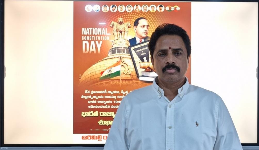 ప్రపంచంలోనే అత్యుత్తమమైన రాజ్యాంగాన్ని అందించిన డాక్టర్ బి.ఆర్.అంబేద్కర్ దేశానికి దిశా దశ నిర్దేశించారని తణుకు ఎమ్మెల్యే ఆరిమిల్లి రాధాకృష్ణ పేర్కొన్నారు. బుధవారం భారత రాజ్యాంగ దినోత్సవాన్ని పురస్కరించుకుని కూటమి కార్యాలయంలో ఏర్పాటు చేసిన కార్యక్రమంలో ఆయన మాట్లాడారు. దేశంలోని అన్ని వర్గాల ప్రజల హక్కులను కాపాడే విధంగా రాజ్యాంగాన్ని అందించిన మహనీయులు డాక్టర్ బి.ఆర్ అంబేద్కర్ అని అన్నారు. ప్రజాస్వామ్యాన్ని కాపాడుకుంటూ ప్రపంచంలో ఏ దేశంలో లేని విలువలు, రాజకీయ విధానాలు కేవలం భారతదేశానికి సాధ్యమయ్యాయి అంటే కేవలం భారత రాజ్యాంగం కారణం అని అన్నారు. కింది స్థాయిలో ఉన్న అనేకమందికి రాజ్యాంగం హక్కులు కల్పించి వారందరినీ ఉన్నతంగా ఎదిగే విధంగా అనేక అవకాశాలు కల్పించారని అన్నారు. దేశంలో ఇన్ని మతాలు, కులాలు, వర్గాలు ఏకీకృతమై అందరూ సంఘీతతమై ఉన్నారంటే మనకు అందించిన రాజ్యాంగం అని అన్నారు. భారత రాజ్యాంగాన్ని అందరూ కాపాడుకుంటూ ఎప్పటికప్పుడు వస్తున్న మార్పులకు అనుగుణంగా ప్రభుత్వాలు, పాలకులు ప్రజలకు మరిన్ని మేలులు చేకూర్చే విధంగా, ఉన్నతంగా ఎదిగే విధంగా రాజ్యాంగాన్ని ముందుకు తీసుకువెళ్లాలని కోరారు. ఈ సందర్భంగా ప్రతి ఒక్కరికి భారత రాజ్యాంగ దినోత్సవ శుభాకాంక్షలు తెలియజేశారు.