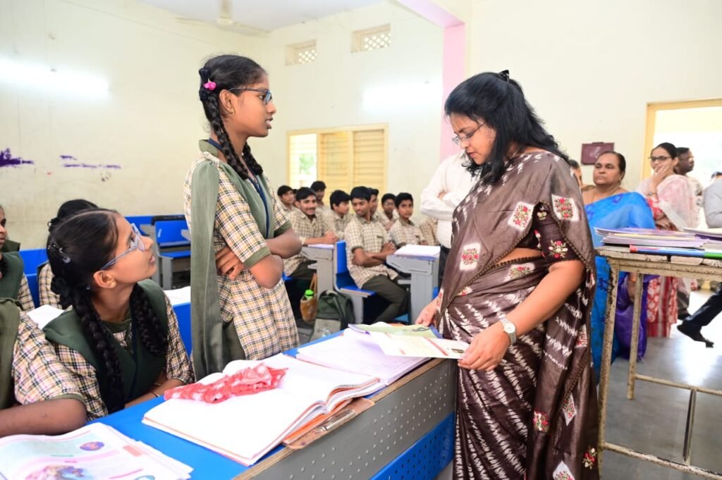 ఒక అమ్మలా లాలించి, గద్దించి విద్యార్థులకు చదువు ఎంతో ఉపయోగమో, భవిష్యత్తు ఎలా ఉంటుందో జిల్లా కలెక్టర్ చదలవాడ నాగరాణి తెలిపారు. శుక్రవారం తణుకు జిల్లా పరిషత్ ప్రాథమికోన్నత పాఠశాలను జిల్లా కలెక్టర్ ఆకస్మిక సందర్శించి 10వ తరగతి విద్యార్థులతో మమేకమయ్యారు. ఈ సందర్భంగా జిల్లా కలెక్టర్ విద్యార్థులతో మాట్లాడుతూ సెల్ ఫోన్ చూస్తున్నారా, సెల్ ఫోన్ లో ఏం చూస్తున్నారు అని ప్రశ్నించారు. మీలో చాగంటి కోటేశ్వరరావు రచించిన “విలువల విద్య” పాఠాలను ఎంతమంది చూశారు అని కూడా ప్రశ్నించారు. సెల్ ఫోన్ కొద్ది సమయం చూడటంలో ఏ విధమైన తప్పు లేదని విజ్ఞానాన్ని పెంచుకునే విషయాలను తెలుసుకోవడానికి మాత్రమే సెల్ ఫోన్ వినియోగించాలన్నారు. తప్పుగా ఉండే వాటికి ఎట్టి పరిస్థితుల్లో ఆకర్షితులు కాకూడదని అవి మీ జీవితాన్ని అగాధం లోనికి నెట్టేస్తాయన్నారు. చదువుకునే వయసులో ఆలోచన ధోరణి మారితే జీవితంలో చాలా ఇబ్బందులను ఎదుర్కొంటారని, చదువు పైనే శ్రద్ధ ఉంచి భవిష్యత్తులో ఉన్నతంగా ఎదిగేందుకు కృషి చేయాలన్నారు. మీకు కావాల్సినవన్నీ మీ తల్లిదండ్రులు సమకూరుస్తారని, మంచి చెడు తల్లిదండ్రులకు తెలిసినంతగా మీకు తెలియదని, దేనికి ఆకర్షితులు కాకుండా తల్లిదండ్రులు చెప్పిన మార్గంలో నడవాలని సూచించారు. అప్పుడే భవిష్యత్తు ఉన్నతంగా ఉంటుందని హితవు పలికారు. పదవ తరగతి తర్వాత ఏ ఏ కోర్సులు చేయవచ్చునో ఉపాధ్యాయులు విద్యార్థులకు తెలియజేయాలన్నారు. ఐటిఐ, పాలిటెక్నిక్, నర్సింగ్ తదితర కోర్సులు జీవితంలో త్వరగా స్థిరపడడానికి ఉపయుక్తంగా ఉంటాయన్నారు. పదో తరగతి విద్యార్థులు నూరు శాతం ఉత్తీర్ణత చెందేలా ఉపాధ్యాయులు కృషి చేయాలని, విద్యార్థులు కూడా అంతే శ్రద్ధతో చదవాలని సూచించారు. బట్టి పట్టి చదవడం కాదని పాఠాన్ని అర్థం చేసుకుని చదవాలని, చదివినది తప్పకుండా చూడకుండా రాయాలని అప్పుడే మర్చిపోకుండా మంచి ఫలితాలను సాధించగలుగుతారన్నారు. ఇటీవల నిర్వహించిన సైన్స్ ఫెయిర్ ఎగ్జిబిషన్ లో ఉత్తమ ప్రతిభ కనబరిచిన రాధికను జిల్లా కలెక్టర్ అభినందించారు. డిసెంబర్ 5న మెగా పేరెంట్స్ టీచర్స్ డే అన్ని ప్రభుత్వ, ప్రైవేటు విద్యాసంస్థల్లో నిర్వహించడం జరుగుతుందని, విద్యార్థుల తల్లిదండ్రులు తప్పక ఈ కార్యక్రమానికి హాజరై మీ పిల్లల అభివృద్ధిని తెలుసుకోవడంతో పాటు, లోటుపాట్లను సరి చేయడానికి అవకాశం ఉంటుందని తెలిపారు. విద్యార్థులు మెగా పేరెంట్స్ టీచర్స్ డే కి తప్పకుండా మీ తల్లిదండ్రులు తీసుకురావాలని సూచించారు. విద్యార్థుల అసెస్మెంట్ బుక్ లను పరిశీలించారు.