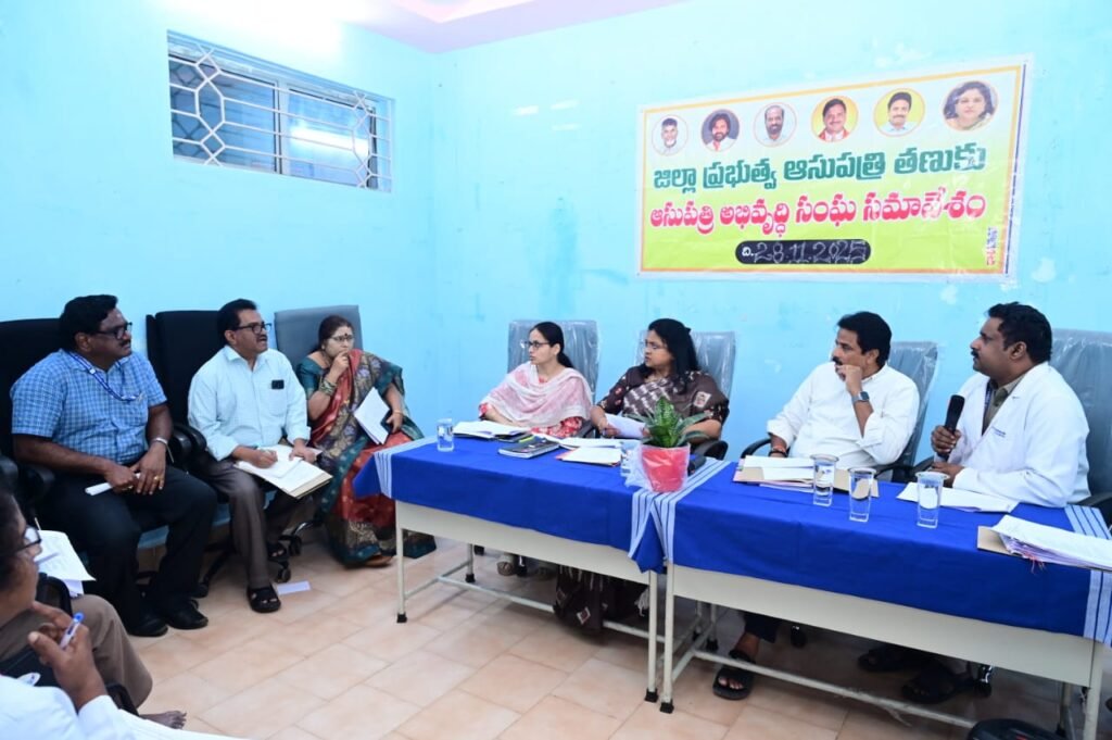 తణుకు ప్రభుత్వ జిల్లా ఆసుపత్రి అభివృద్ధి సంఘం సమావేశం శుక్రవారం జిల్లా కలెక్టర్ చదలవాడ నాగరాణి అధ్యక్షతన నిర్వహించడం జరిగింది. సమావేశంలో తణుకు శాసనసభ్యులు ఆరుమిల్లి రాధాకృష్ణ పాల్గొన్నారు. తొలుత ఆసుపత్రి సూపరింటెండెంట్ డాక్టర్ కె.సాయి కిరణ్ గత సమావేశంలో నమోదు చేసిన అంశాలపై తీసుకున్న చర్యలను కమిటీకి వివరించారు. అనంతరం కమిటీ ఆమోదం కొరకు ఉంచిన 21 అంశాలపై క్షుణ్ణంగా చర్చించడం జరిగింది. ఈ సందర్భంగా జిల్లా కలెక్టర్ అధ్యక్షతన సమావేశమైన కమిటీ కొన్ని పనులకు ఆమోదం తెలుపగా, ఒక అంశానికి సంబంధించి వివరాలు సమర్పించాలని సూచించారు. జిల్లా కలెక్టర్ చదలవాడ నాగరాణి మాట్లాడుతూ గత సమావేశంలో చర్చించిన పనులు సుమారు 90 శాతం వరకు పూర్తయ్యాయని, మిగిలిన పనులు కూడా త్వరలో పూర్తి చేయడం జరుగుతుంది అన్నారు. ప్రధానంగా ఆసుపత్రికి వచ్చే రోగులకు ఏ విధమైన అసౌకర్యం లేకుండా మెరుగైన సౌకర్యాలు కల్పించడమే లక్ష్యంగా పనిచేస్తున్నామని తెలిపారు. ప్రతి పనిని కమిటీ సభ్యులతో చర్చించి ఆమోదం పొందిన తర్వాతే చేపట్టాలని సూచించారు. హాస్పటల్ బ్లడ్ స్టోరేజ్ సెంటర్ ఉందని, త్వరలో బ్లడ్ బ్యాంకు ను అందుబాటులో తీసుకురావడం జరుగుతుంది అన్నారు. హాస్పిటల్లో ఖాళీగా ఉన్న రేడియోలజిస్ట్ ను వేరే ఆసుపత్రి నుండి ఇక్కడ నియమించడం జరుగుతుందన్నారు. ఆసుపత్రిలో ప్రధాన విభాగాల్లో వైద్యుల కొరతపై వైద్య ఆరోగ్యశాఖ ప్రిన్సిపల్ సెక్రెటరీ కి లేఖరాసి భర్తీ చేయడానికి చర్యలు తీసుకోవడం జరుగుతుందని తెలిపారు. క్యాజువాల్టీకి సరైన ప్రవేశం లేదని, శాసనసభ్యులు తెలిపిన మేరకు నేరుగా క్యాజువాలిటీకి చేరుకునేలా మార్గాన్ని ఏర్పాటు చేస్తున్నట్లు తెలిపారు. డ్రైనేజీ, ఎలక్ట్రికల్ పనులతో పాటు, డోర్స్, కిటికీలు మరమ్మత్తులను కూడా చేపట్టడం జరుగుతుందని తెలిపారు. అనంతరం తల్లి పిల్లల విభాగాన్ని, ఫిమేల్ వార్డులను పరిశీలించి ఆసుపత్రి సూపరింటెండెంట్ కు పలు ఆదేశాలు జారీ చేశారు. ఆసుపత్రిలో ప్రసవాలు, సర్జరీలు బాగా పెరిగినందుకు ఆసుపత్రి సూపరింటెండెంట్ ను ఈ సందర్భంగా జిల్లా కలెక్టర్ అభినందించారు. సమావేశంలో తణుకు శాసనసభ్యులు ఆరుమిల్లి రాధాకృష్ణ, తాడేపల్లిగూడెం ఆర్డిఓ కతీబ్ కౌసర్ భానో, డి సి హెచ్ ఎస్ డాక్టర్ పగడాల సూర్యనారాయణ, డిఎంహెచ్వో డాక్టర్ బి.గీతా బాయి, ఆసుపత్రి సూపరింటెండెంట్ డాక్టర్ కే సాయి కిరణ్, ఏపీఎంఎస్ఐడిసి ఈఈ యూ ఎస్ వై రాజాబాబు, ఆర్ ఎం ఓ డాక్టర్ ఏవీఎస్ తాతారావు, కమిటీ సభ్యులు డాక్టర్ అయేషా ఖాన్, కే. కిరణ్మై, వి.గంగారావు, సుంకర ప్రసాద్, ఆసుపత్రి ఏవో షణ్ముఖ రెడ్డి, తహసిల్దార్ డివీఎస్ అశోక్ వర్మ, తదితరులు పాల్గొన్నారు.