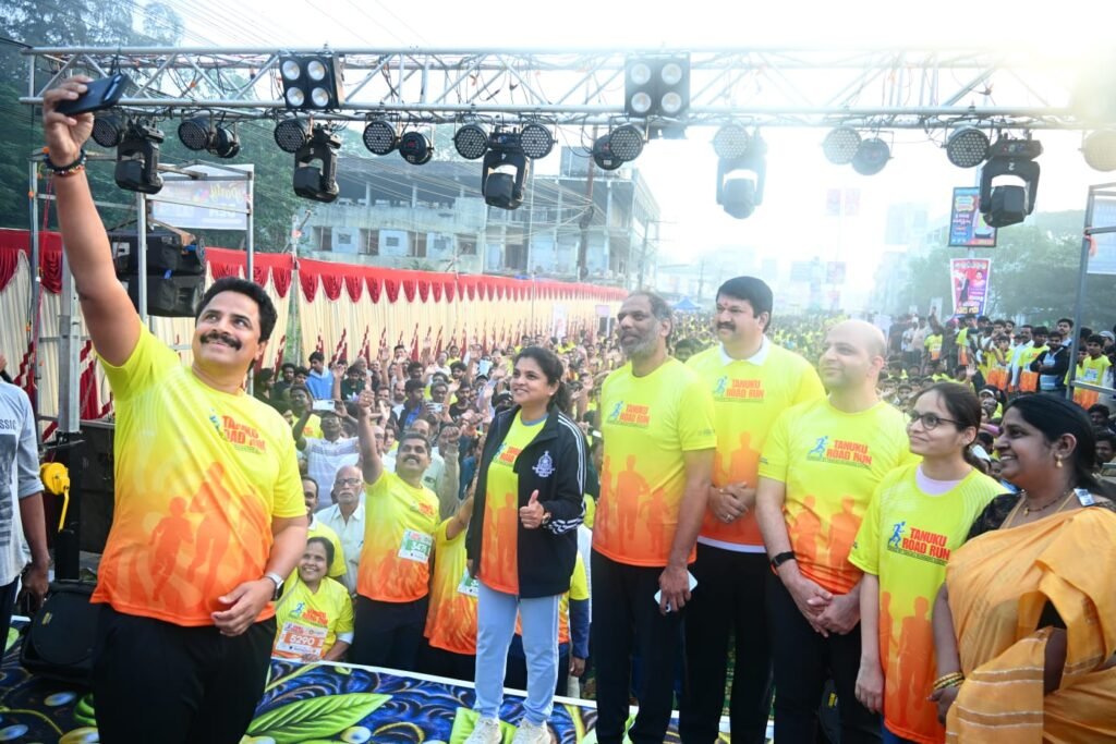 తణుకు రోడ్డు రన్ కార్యక్రమంలో 3కె రన్ విభాగం రన్నింగ్ లో జిల్లా కలెక్టర్ చదలవాడ నాగరాణి, జిల్లా ఎస్పీ అద్నాన్ నయీం అస్మీ, తణుకు శాసనసభ్యులు ఆరిమిల్లి రాధాకృష్ణ ఏపీఐఐసీ చైర్మన్ మంతెన రామరాజు, ఆర్డిఓ ఖతీబ్ కౌసర్ భానో పాల్గొన్నారు.