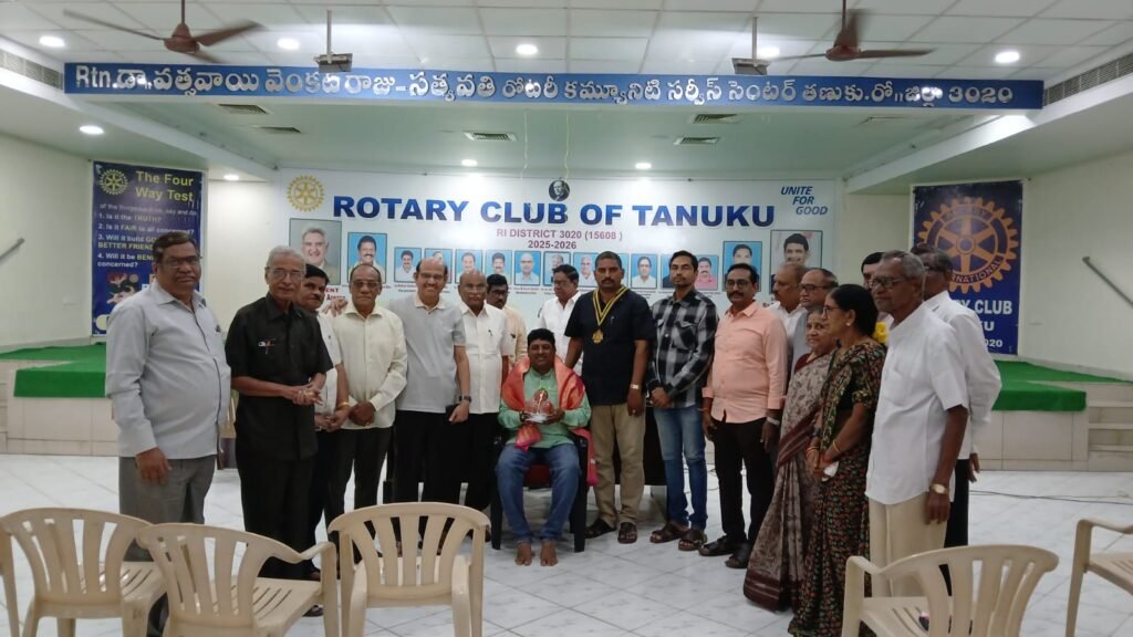 ప్రముఖ రంగస్థలం కళాకారుడు షణ్ముఖి విజయ్ కుమార్ రాజు తణుకు రోటరీ క్లబ్ ఆవరణలో గురువారం ఏకపాత్రాభినయంతో శ్రీకృష్ణ రాయబారం నాటికను హావభావాలతో విన్యాసం సంభాషణ చాతుర్యం హృద్యంగా పాడిన పద్యాలతో అందరిని అలరించారు. ఈ సందర్భంగా ఏర్పాటు చేసిన సమావేశంలో ప్రముఖ రంగస్థలం కళాకారుడు అభినవ కృష్ణునిగా పేరుగాంచిన కీర్తిశేషులు ఆంజనేయరాజు పుత్రునిగా శ్రీకృష్ణరాయబారం దృశ్యాన్ని ప్రదర్శించి తండ్రికి తగిన గానగంధర్వుడని నిరూపించారనీ కార్యక్రమానికి అధ్యక్షత వహించిన రొ. ఆనందం మస్తాన్ రావు అన్నారు. ఏకపాత్రాభినయం తిలకించిన పట్టణ ప్రముఖులు షణ్ముఖ కళాపీఠానికి ఆద్యులైన ప్రముఖ కవి రసరాజు తదితరులు కరతాల ధ్వనులతో ఆనందం వ్యక్తం చేశారు. ఈ కార్యక్రమంలో రొటీరియన్లు జి. సుధాకర్, గమిని రాంబాబు, వి. పార్వతి, వి. హనుమంతరావు, వై.బాబూరావు, రెడ్డి రంగారావు, నందిగం సుధాకర్, ఆకర్ల సుబ్రహ్మణ్యం, ఆకుల శేషుబాబు, అడ్డాల ప్రసాద్, విహరి, పవన్ రాజు తదితరులు పాల్గొన్నారు.