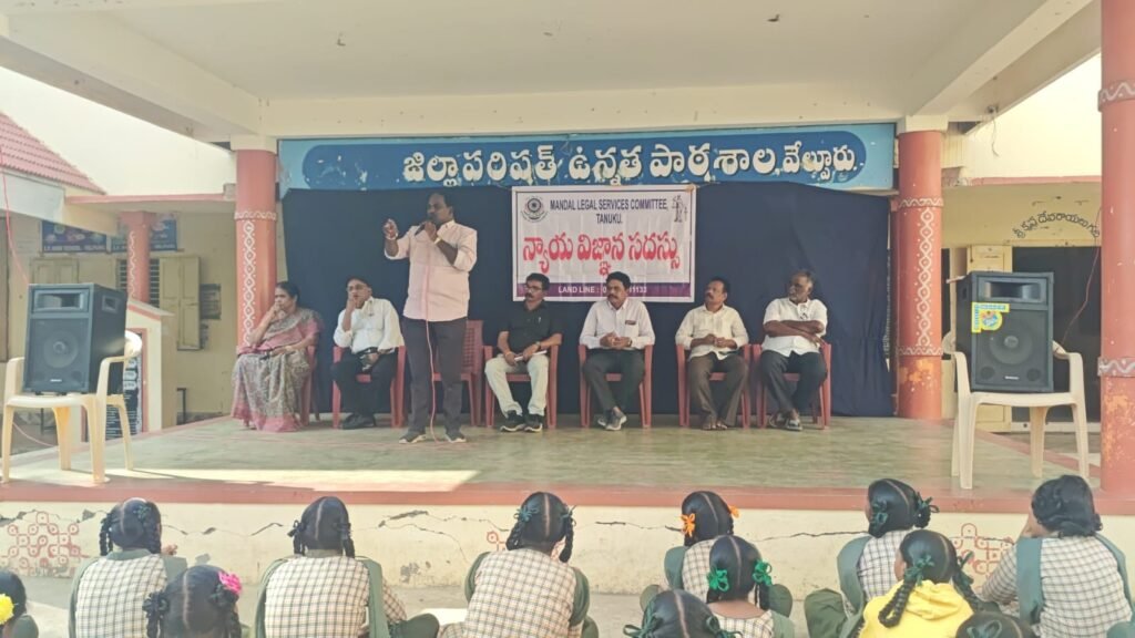 ఆంధ్రప్రదేశ్ రాష్ట్ర న్యాయసేవల సంస్థ గుంటూరు వారి ఉత్తర్వులు మేరకు, చైర్మన్ మరియు నాలుగవ అదనపు జిల్లా జడ్జి, తణుకు డి. సత్యవతి ఆదేశముల మేరకు సీనియర్ న్యాయవాదులు కౌర్ వెంకటేశ్వర్లు, స్కూల్ హెడ్మాస్టార్ రాధకృష్ణ, పారా లీగల్ వాలంటీర్ లు దూలపల్లి బ్రహ్మాజీ, కాకర్ల నరసన్న జాతీయ యువజనోత్సవాలలో భాగంగా పిల్లలకు మాదక ద్రవ్యాలు (డ్రగ్స్) వాడకం వాటి పరిణామాలు గురించి తెలియచేస్తూ, యువత చెడు వ్యసనాలకు బానిసైన మత్తు పదార్థాలు సేవించటం, అమ్మటం, రవాణా చేయటం జరుగుతుందని, ఇదీ చట్ట వ్యతిరేక కార్యక్రమము, ఎంతో మంది అక్రమ ఆర్జన కోసం గంజాయి, కొకైన్ పంటలు పండించటం, దానిని ప్రొఫెషనల్ కళాశాలలో అమ్మి పిల్లల జీవితాలు నాశనం చేస్తున్నారని, అలాగే ప్రతి కుటుంబంలో తండ్రి చెడు అలవాట్లుకు లోనైతే అనగా మత్తు పదార్థాలు సేవించటం వలన కుటుంబం కుటుంబం మొత్తం నాశనమవుతుందని, ఆడ, మగ పిల్లలు హైస్కూల్ స్థాయి నుండి చట్టాలపై అవగాహన కలిగి జీవించాలని, యువతను పాడు చేయుటకు కొన్ని డ్రగ్స్ గ్యాంగ్ లు గంజాయి, కొకైన్ వివిధ రూపాలలో తయారు చేసి అక్రమంగా అమ్మి యువత జీవితాలతో ఆడుకుంటున్నారని, సమాజాన్ని నాశనం చేస్తున్నారని, చదువుకునే యువత కొంత అవగాహనతో పర్యావరణాన్ని కాపాడుకోవడానికి తమ వంతు కృషి చేస్తున్నారని, అలాగే మాదక ద్రవ్యాలను నిర్మూలించడానికి కూడా కృషి చేసి డ్రగ్స్ రహిత సమాజాన్ని నెలకొల్పాలని, అలాగే బాల్య వివాహాలను, బాలకార్మిక వ్యవస్థను నిర్మూలించాలని ప్రతి విద్యార్థి ట్రాఫిక్ రూల్స్ తెలుసుకుని వయసు రాకుండా మోటారు వాహనాలు నడుపకూడదని తెలిపారు.