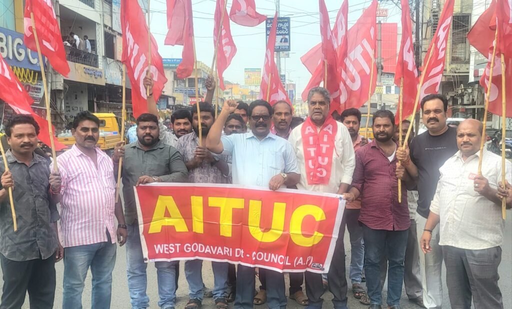 ఏఐటీయూసీ,సీఐటీయూ నాయకులు బొద్దాని నాగరాజు,అడ్డగర్ల అజయకుమారి,గుబ్బల గోపి,బళ్ళ చిన వీరభద్రం, పిఎల్ నరశింహారావు,మందుల ముత్తయ్య,ఎం.రమేష్, దక్షిణామూర్తి,శివకుమార్ తదితరులు పాల్గొన్నారు.