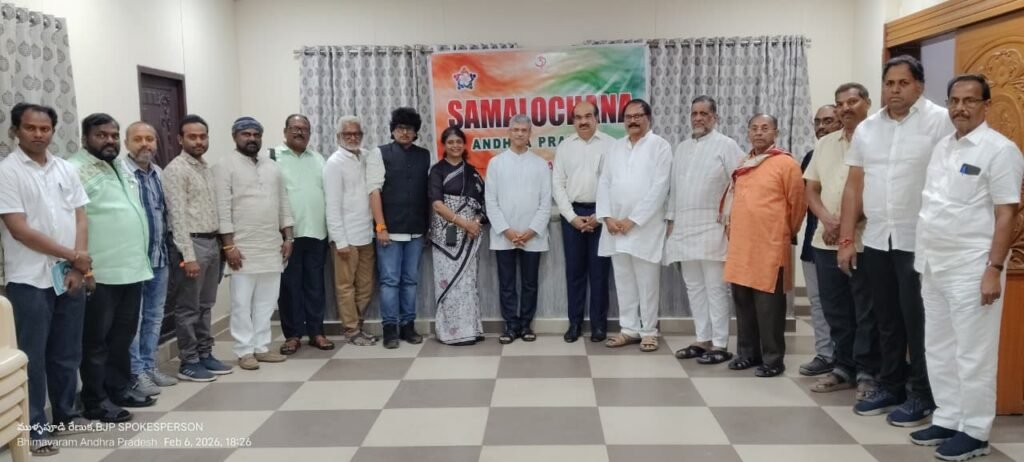 భీమవరం పగోజిల్లా కేంద్రం భీమవరంలో బీజేపీ శ్రేణులకు నిర్వహించిన మేధోమదన కార్యక్రమం “సమాలోచన” శుక్రవారం ఘనంగా జరిగింది. ఈ కార్యక్రమంలో ముఖ్యఅతిథిగా అఖిల భారతీయ సహ సంయోజక్ “శ్రీ చంద్రకాంత్ శర్మ జి” (ప్రజ్ఞ ప్రవాహ్) పాల్గొనడమైనది. “చంద్రకాంత్ శర్మ జి” లండన్ కేంద్రముగా విశ్వవిభాగ్ ప్రచార ప్రముక్ గా 15 సంవత్సరాలు, 20 దేశాలలో ముఖ్యంగా యూరప్, ఆఫ్రికా, మరియు అమెరికా దేశాలలో ప్రవాస్ గా సేవలందించారు. ఈ సందర్భంగా ఏ.పి.బిజేపి అధికార ప్రతినిధి ముళ్ళపూడి రేణుక మాట్లాడుతూ ఈ కార్యక్రమం అనేక కొత్త విషయాలు ద్వారా తెలుసుకునే అవకాశం లభించినందుకు చాలా ఆనందాన్ని కలిగించిందని ఆమే తెలిపారు. ఈ సందర్భంగా వివిధ రంగాలకు చెందిన మేధావులతో 2026 బడ్జెట్ పైన మేధోమధనం ద్వారా బి.జే.పి. నాయకులు, కార్యకర్తలు తెలుసుకున్నారు.