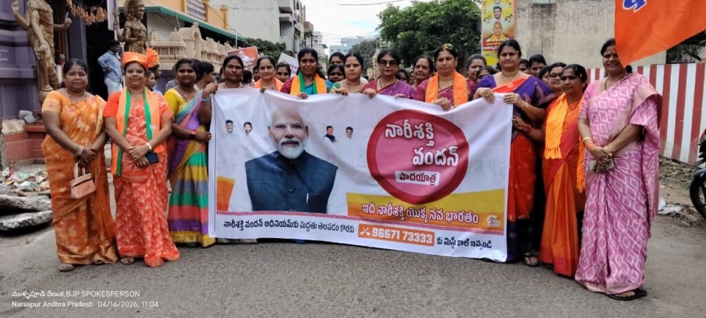 నరసాపురం : మహిళా రిజర్వేషన్ చట్ట సవరణ బిల్లు భారత రాజకీయ చరిత్రలో ఒక మైలురాయిగా నిలిచిందని పలువురు ప్రముఖులు అభిప్రాయపడ్డారు. ఈ చారిత్రాత్మక నిర్ణయానికి మద్దతుగా పశ్చిమగోదావరిజిల్లా మహిళా మోర్చా ఆధ్వర్యంలో నరసాపురంలో విశేష కార్యక్రమం ఘనంగా నిర్వహించబడింది. ఈ సందర్భంగా 33 శాతం మహిళా రిజర్వేషన్ బిల్లును అమలు దిశగా ముందుకు తీసుకెళ్లిన ప్రధానమంత్రి నరేంద్ర మోదీకి కృతజ్ఞతలు తెలియజేస్తూ, జిల్లా అధ్యక్షురాలు శ్రీమతి గన్నాబత్తుల సత్యవతి నాయకత్వంలో భారీ ర్యాలీ చేపట్టారు.